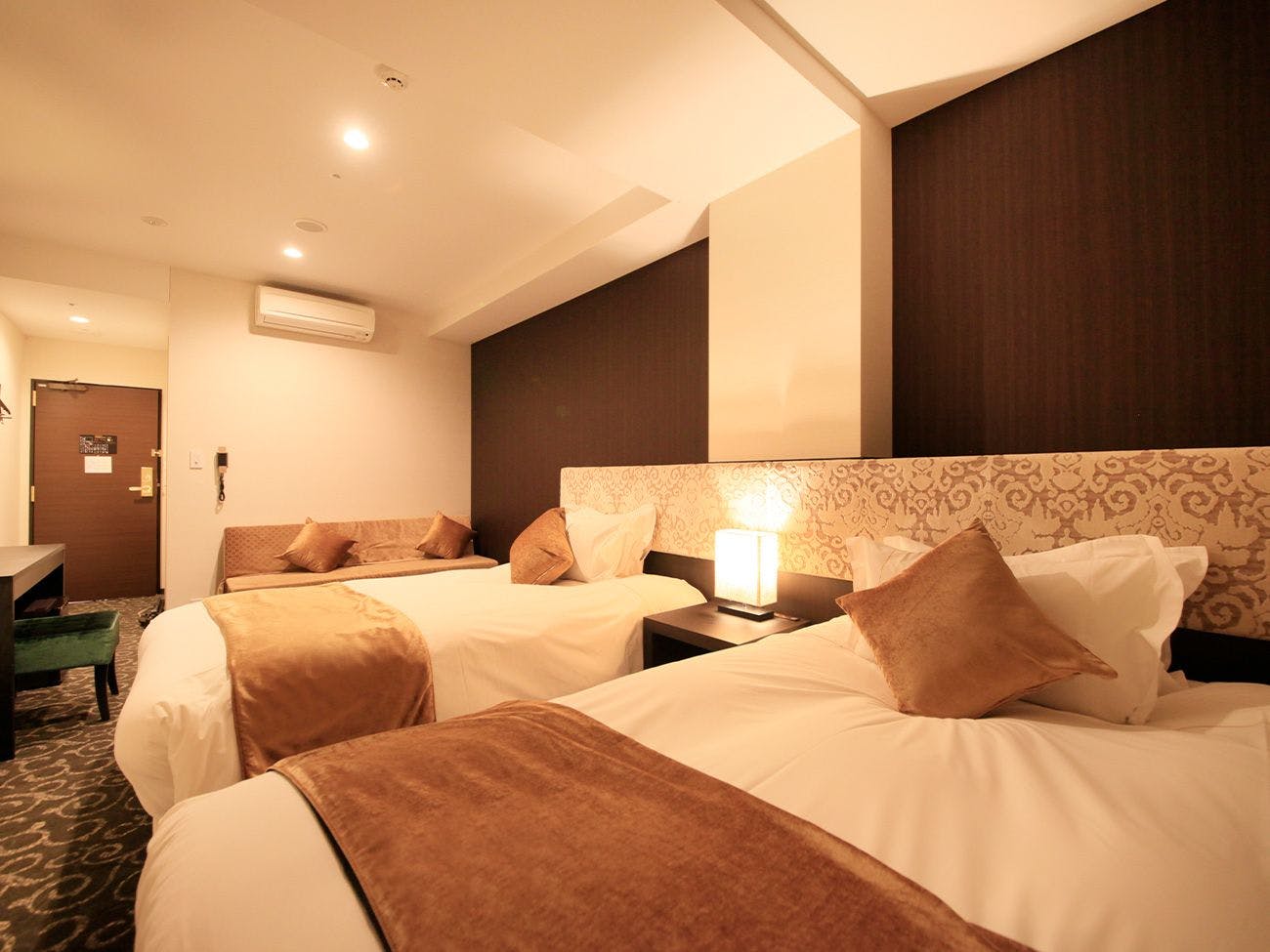 約20平米 / セミダブルベッド(120cm幅)×2台 ソファーベッド(100cm幅) / 3名利用可