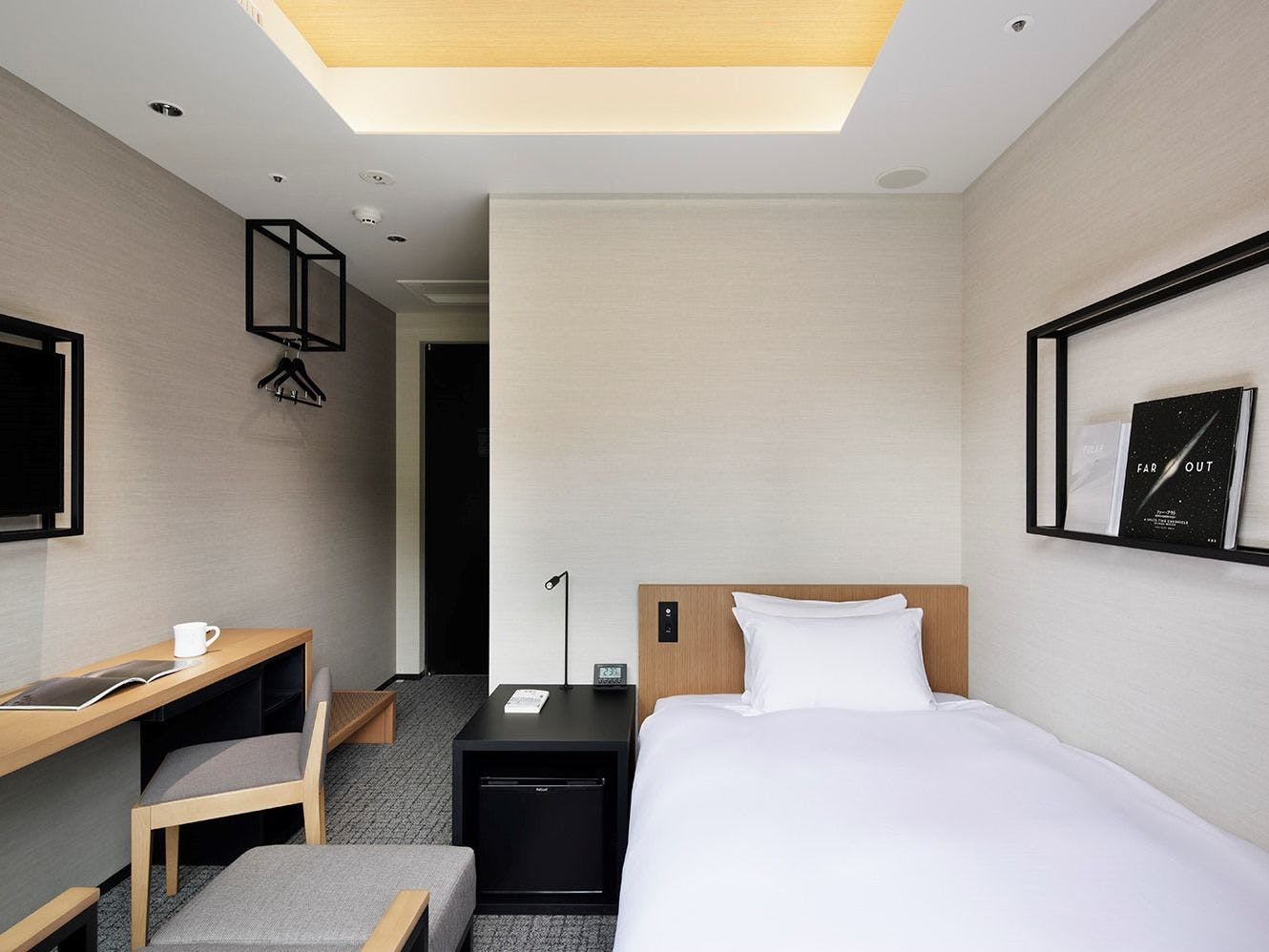 すべての客室に足を伸ばしてくつろげるオットマン付きのソファーをご用意しました。誰にも邪魔されずに本の世界に浸れる、シンプルなシングルルームです。歯ブラシが客室に常設からレセプション提供に変わります。