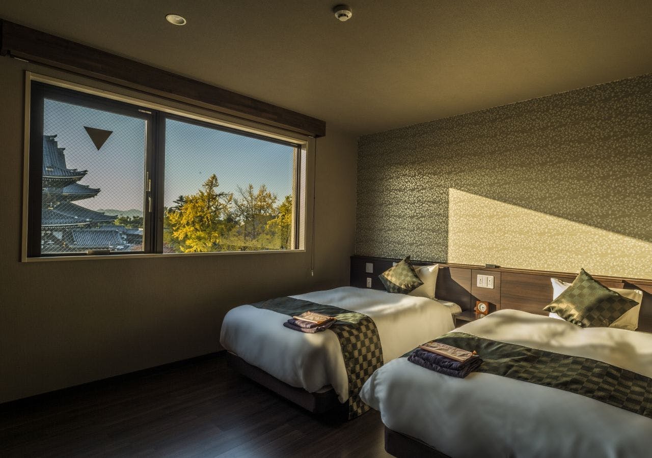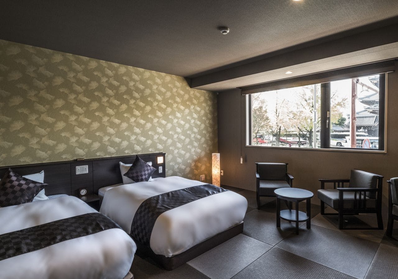 2017年9月13日OPEN!京都駅から徒歩約7分東本願寺正面、和の趣とスタイリッシュなデザインが融合する空間。男女日替わりの大浴場(サウナ・水風呂)、畳敷きの小浴場完備。全室禁煙、1F喫煙所あり。