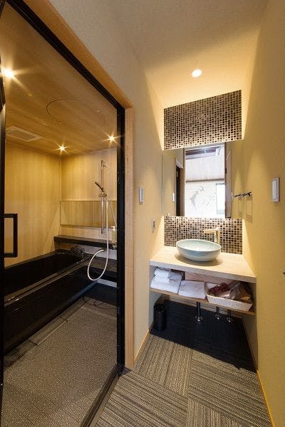 京都ならではの「引き算の文化」をシンプルかつ機能的に昇華させたお部屋です。シャワーはマイクロバブルシャワーを設置。快適にお過ごし頂けるお部屋です。
