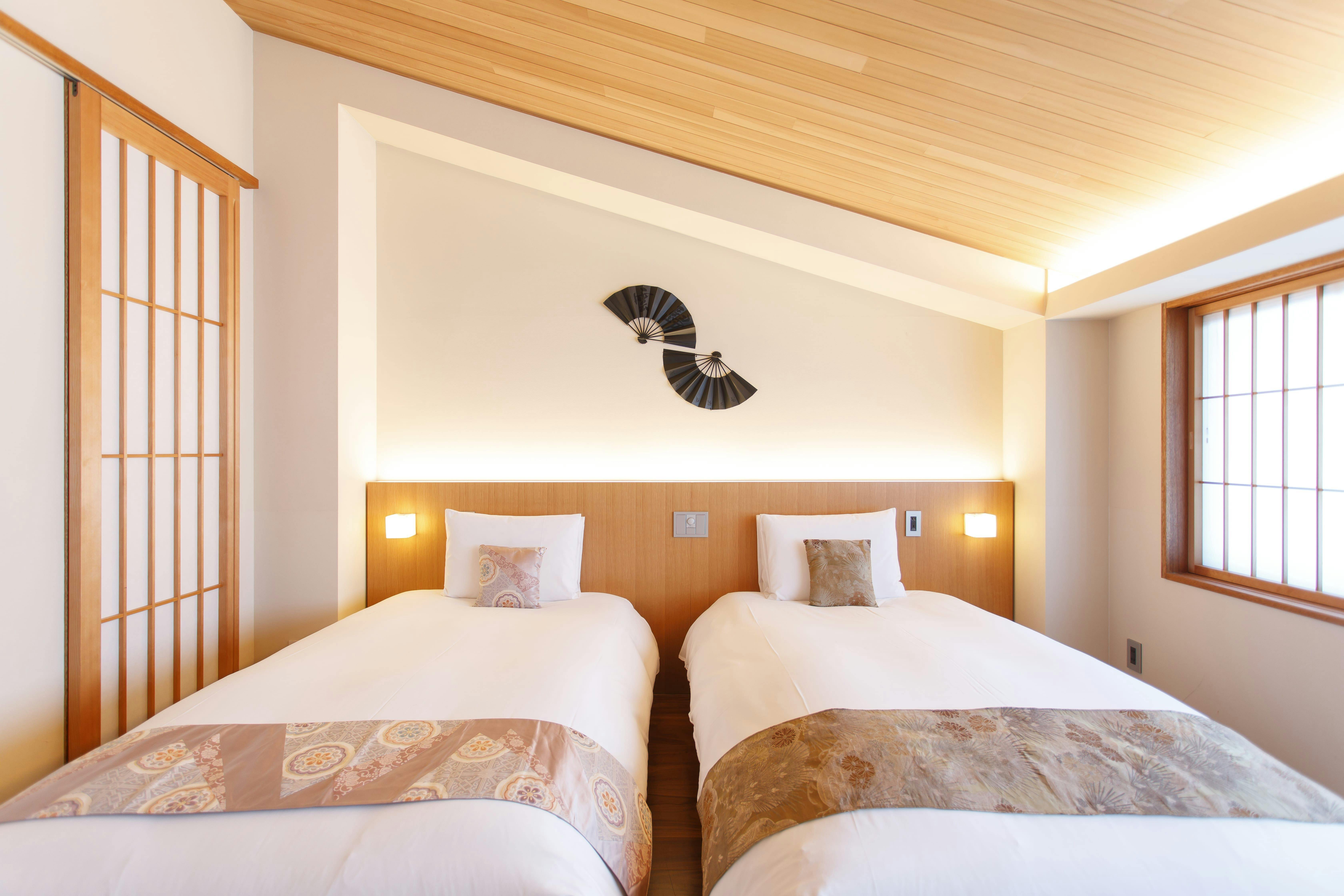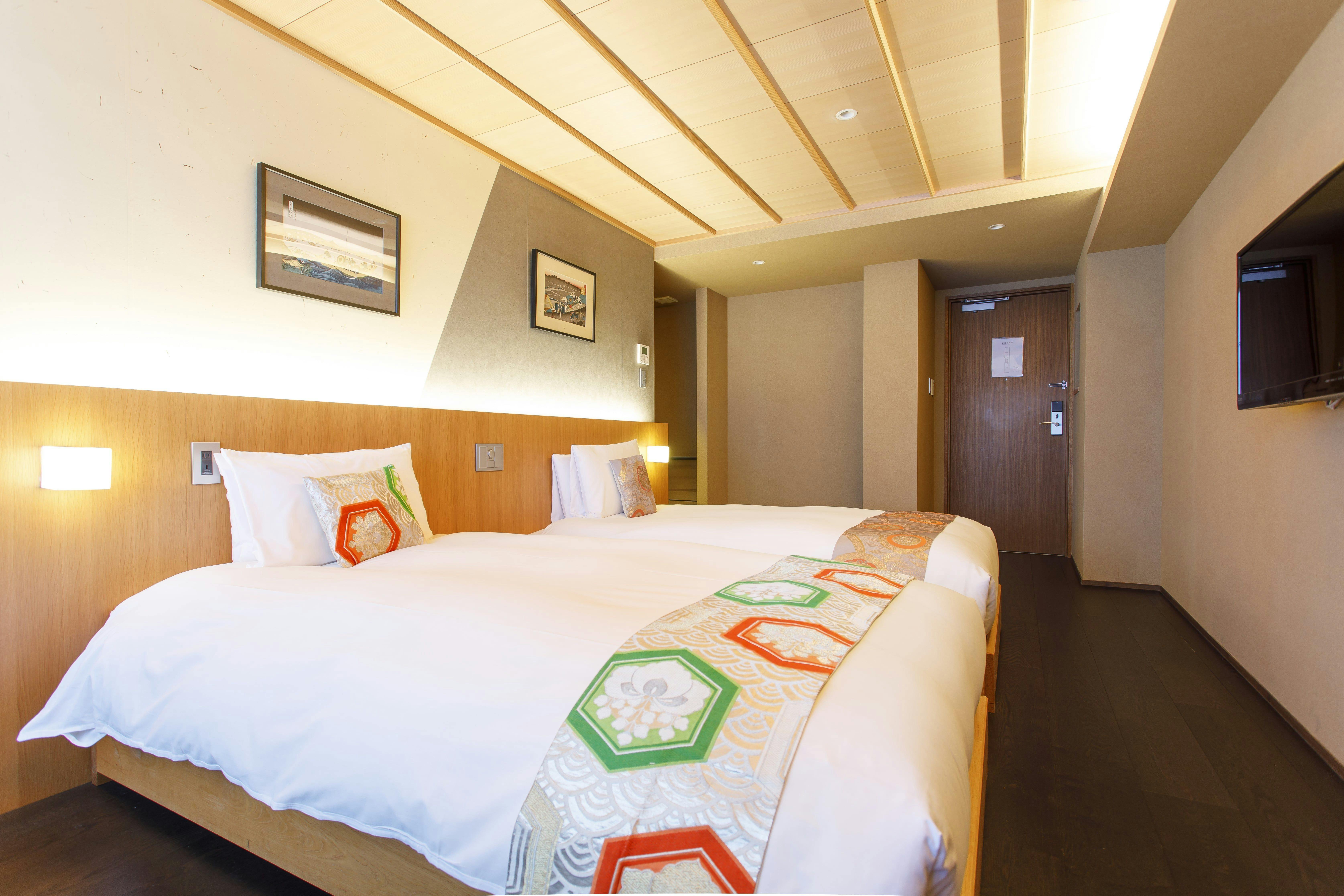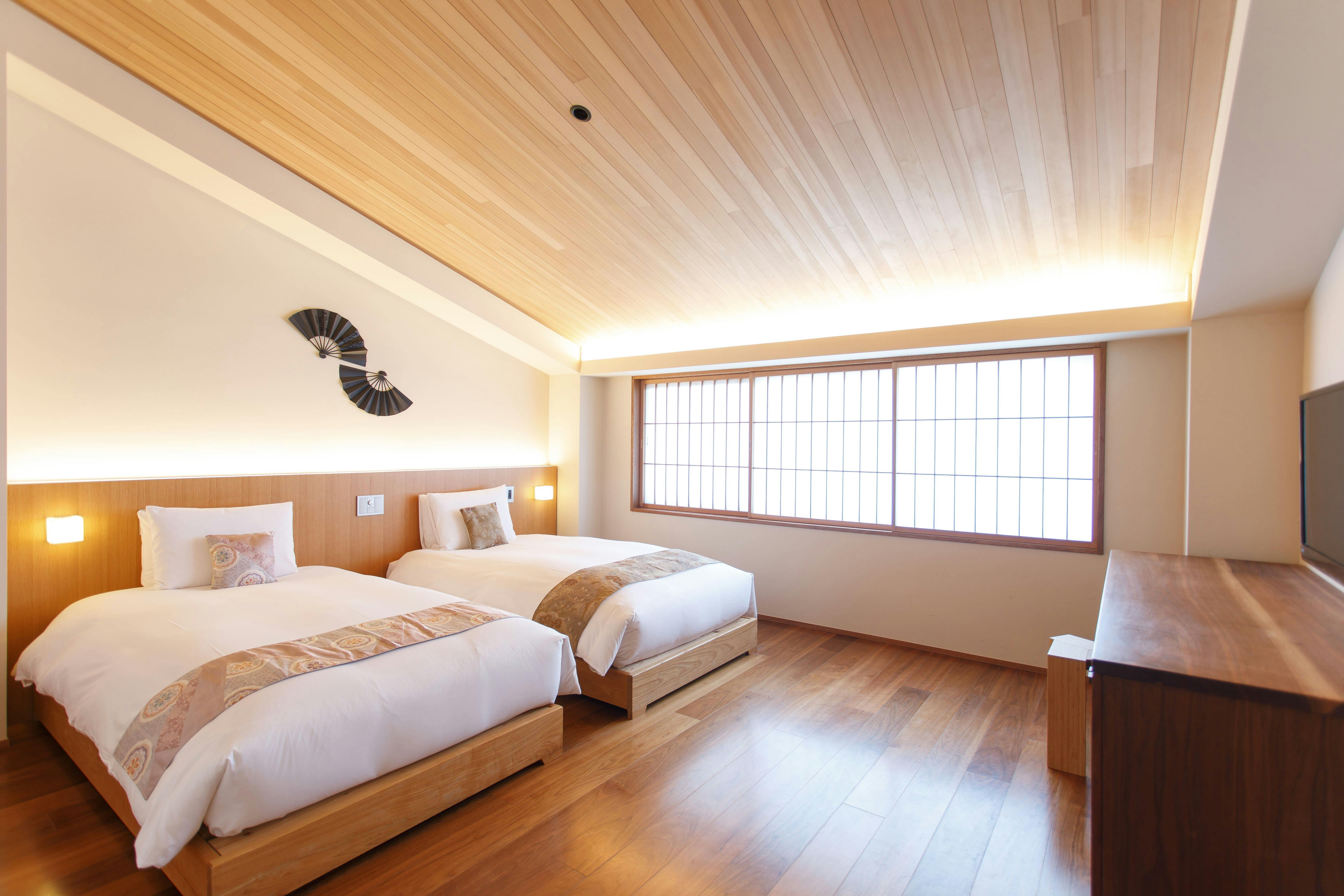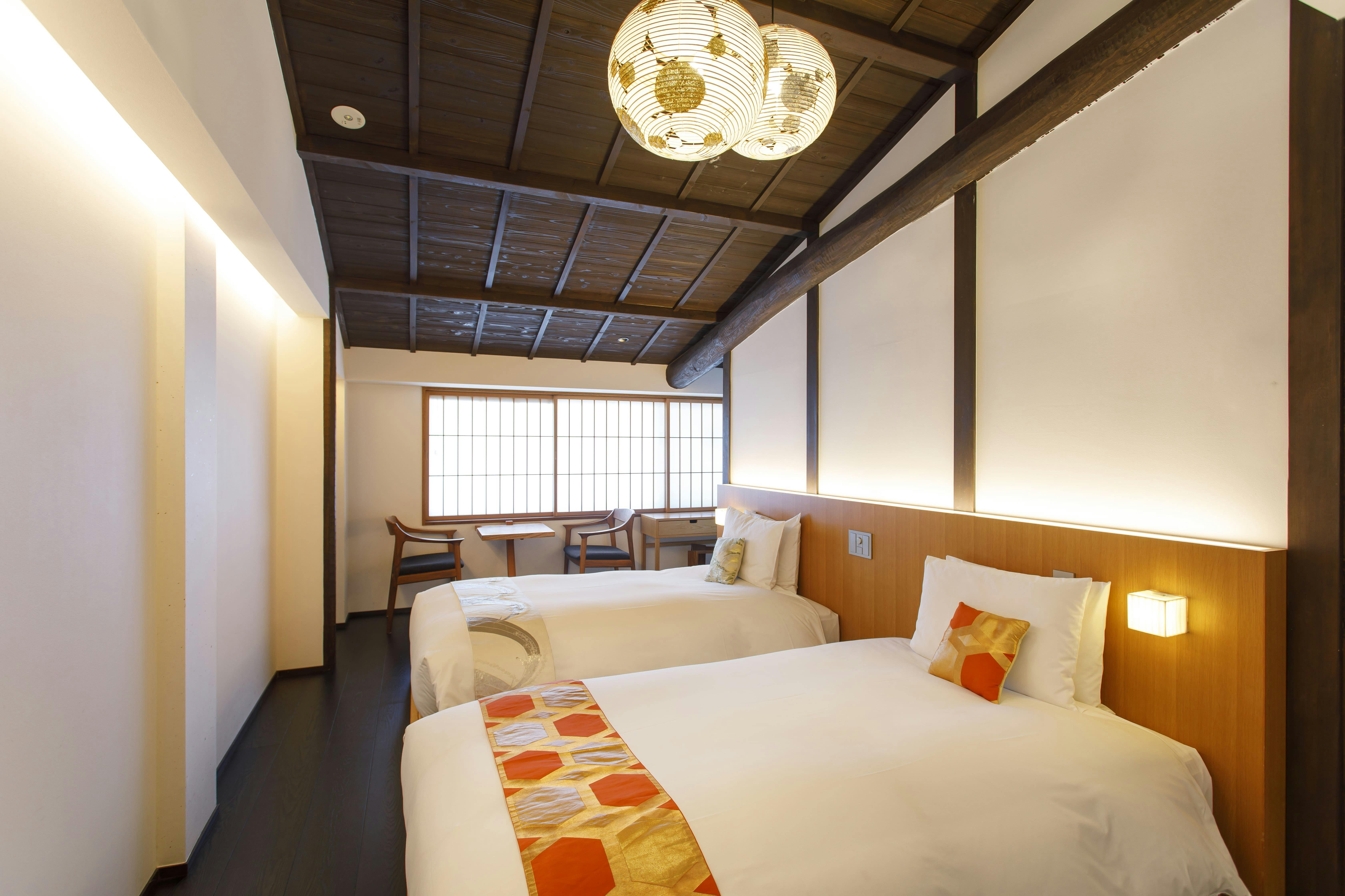 ゆったりと眠れるハリウッドツインの客室は伝統的な町家の雰囲気を楽しみながら、こだわりのアメニティ、設備を揃え快適さを提供します。