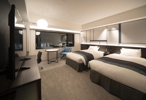 大阪らしさ・ヴィスキオらしさの光るインテリアでゲストをお迎えします。※3名利用時はエキストラベッドを用意■設備内容■広さ・・・28.1平米ベットサイズ・・・横110cm×縦200cm×2台 エキストラベッド横100cm×縦188cmWI-FI有り(無料)