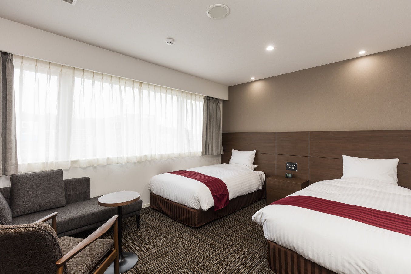 バス・トイレ付 シモンズ社製6.5インチマットレス 幅1200 mm(2台)/32型液晶テレビ/加湿空気清浄機/無線LAN接続/バスタブ有り