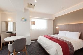 21平米以上の広々として落ち着いた雰囲気の洗濯乾燥機付きのお部屋(喫煙)。ダブルベッド(160cm幅)はゆとりの大きさです。ゆったりと体を伸ばせるバスルーム一日の疲れを癒せて大好評!無料インターネット・Wi-Fi回線完備!電子レンジ付!