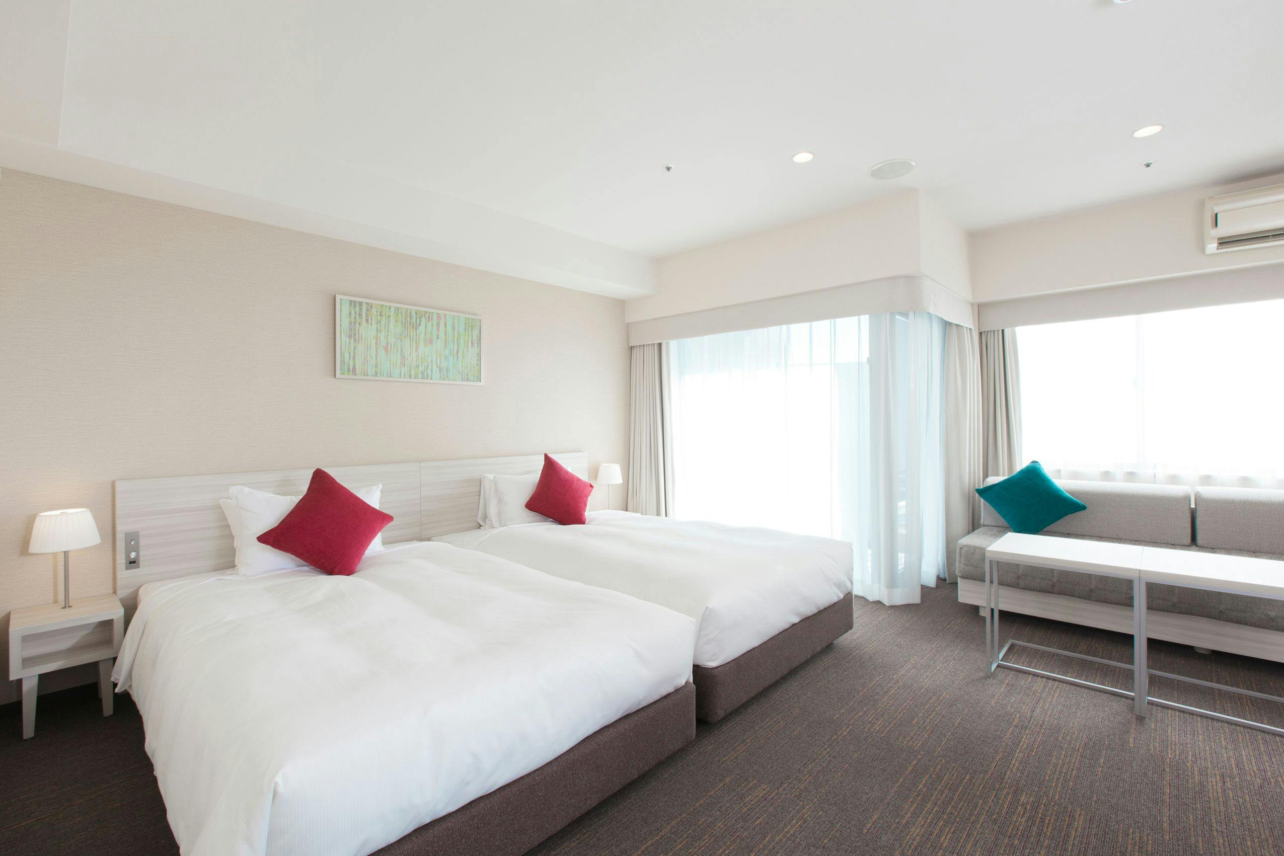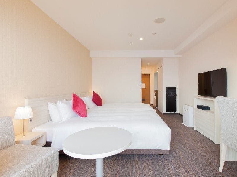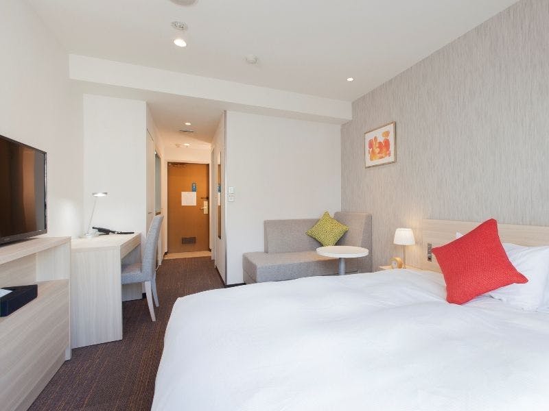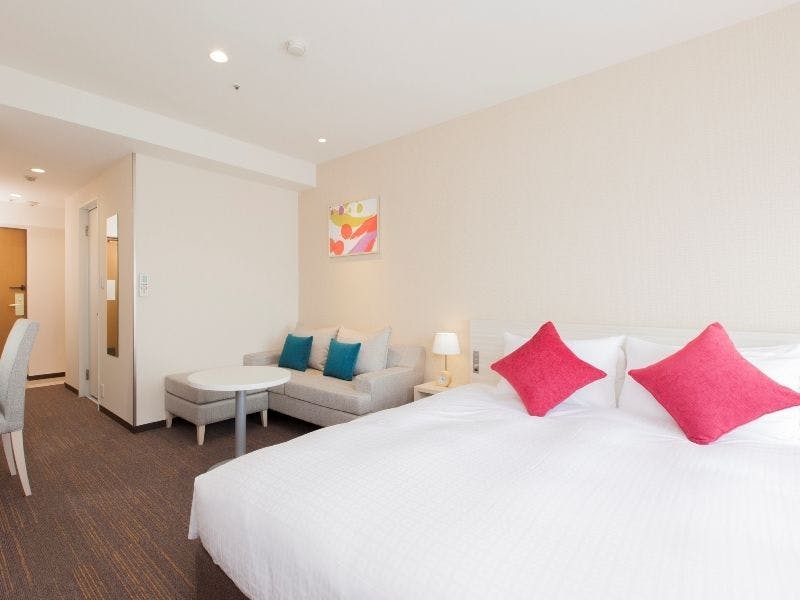 サータブランドマットレスを採用し、快適な睡眠をご提供致します。 客室内に洗濯乾燥機があり、少ない荷物でご宿泊でき出張やレジャーにもお勧めです。簡単な調理も可能なミニキッチンも備え付けております。TV・電子レンジ・加湿空気清浄機・インターネット(LAN&Wi-Fi)を完備。バスルームはゆったりと体を伸ばせる大きさで、一日の疲れを癒すのにも最適。バスルームとは別にシャワーブースもご用意。スタジオベッド使用で3名様でのご宿泊も可能です。