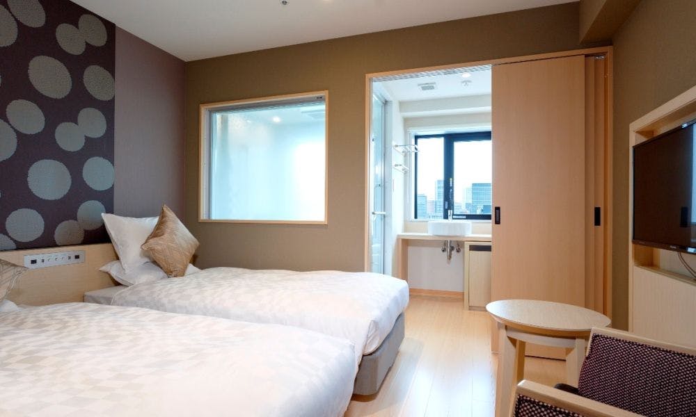 大阪の眺望を楽しみながらご入浴いただける「ビューバス」を完備した、明るく、コンパクトな客室です。