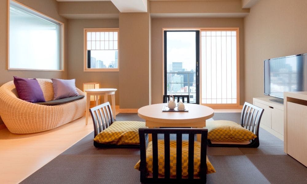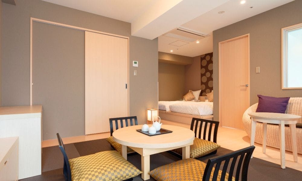 靴を脱いでゆっくりとおくつろぎいただける客室です。布団を敷いて4名様までご宿泊いただけます。