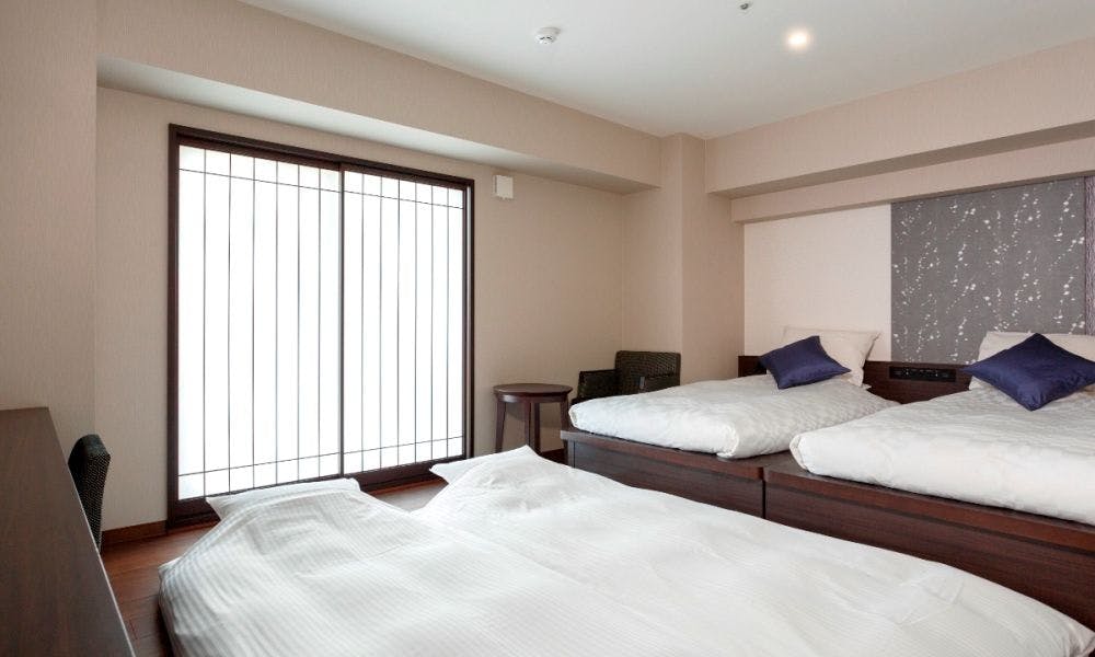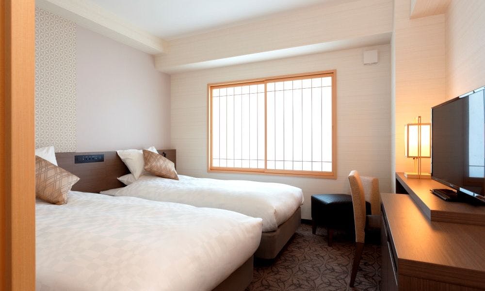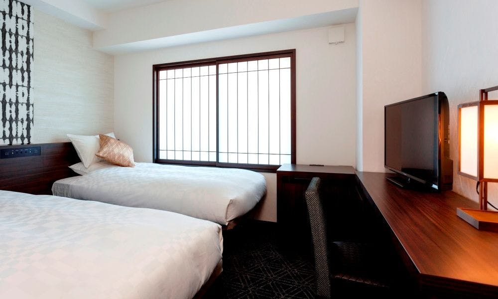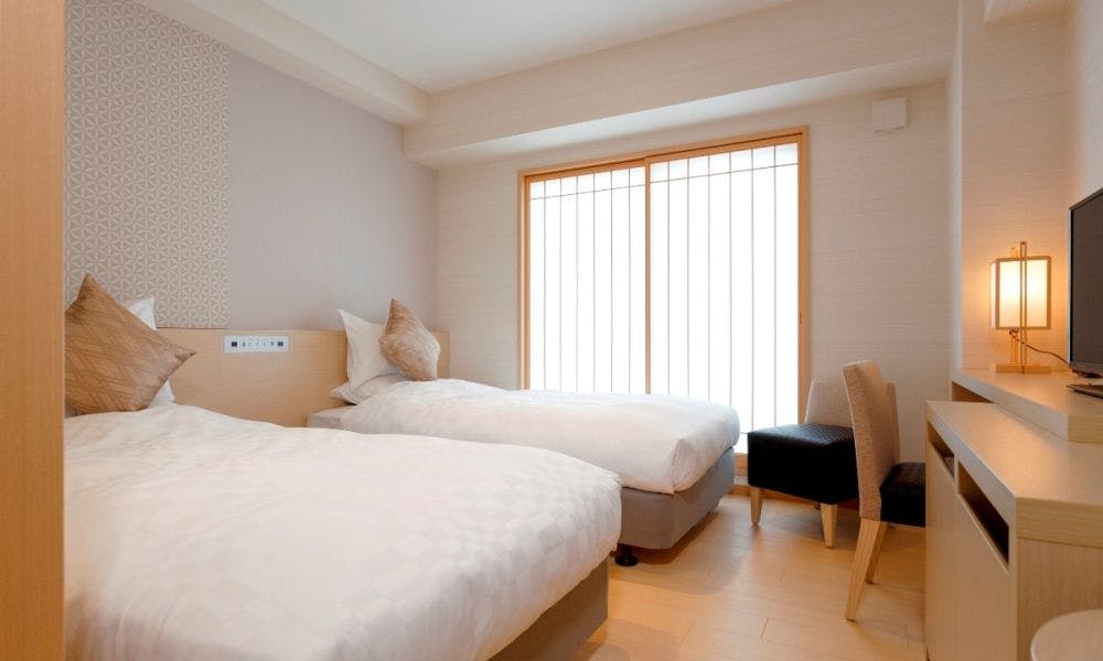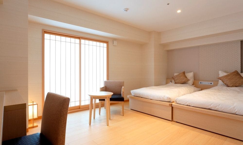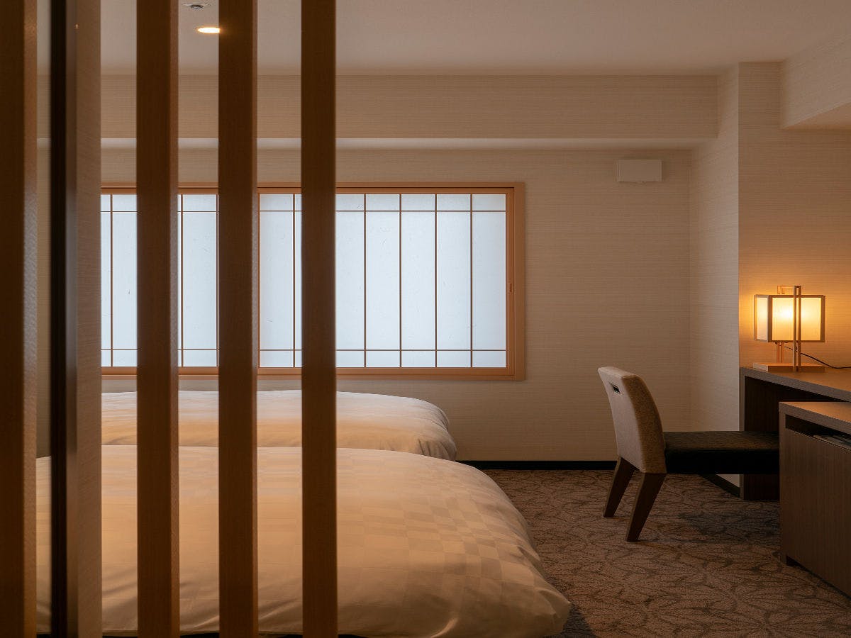 洋室ながら、和を感じるデザインを取り入れたシンプルなゲストルーム。