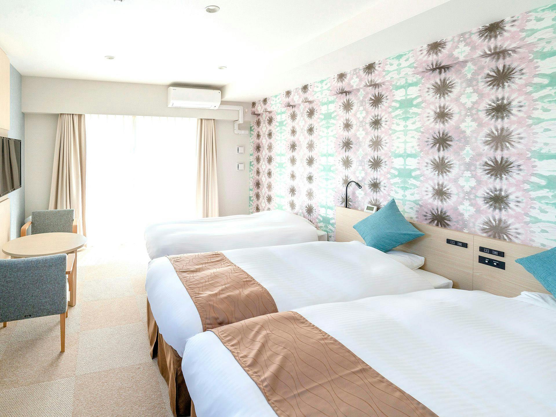 アメリカンビーチをテーマとしたおしゃれなホテルが誕生。バラエティに富んだ客室タイプはカップル・女子旅・ファミリーに最適。美浜アメリカンビレッジやサンセットビーチも徒歩圏内。