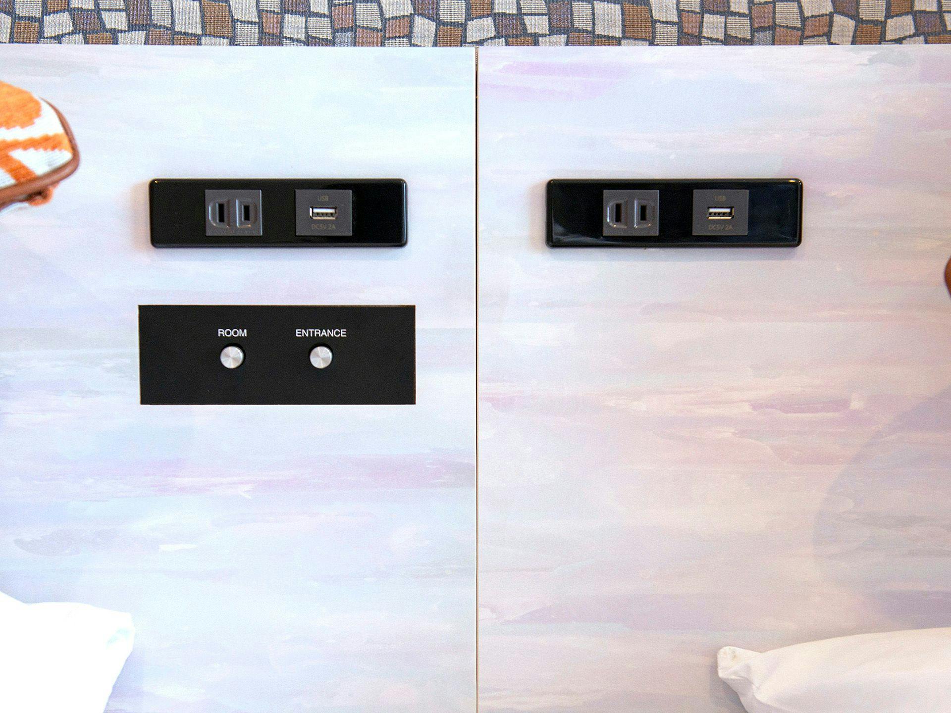 ベット2台を密着して並べるハリウッドツインスタイル。ベットヘッドは、充電用USBポート<Type-A>付きコンセントとベットライトを備えています。