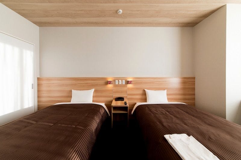 機能性と優美さを兼ね揃えた空間が快適な時間を演出致します。■客室設備・ベッドサイズ:120×200×2台・冷蔵庫完備(中身は空)・壁掛けテレビ・ドライヤー・電気ケトル■フロントにて貸出(いずれも数に限りがございます)・ズボンプレッサー・消臭スプレー・加湿器・爪切り・体温計