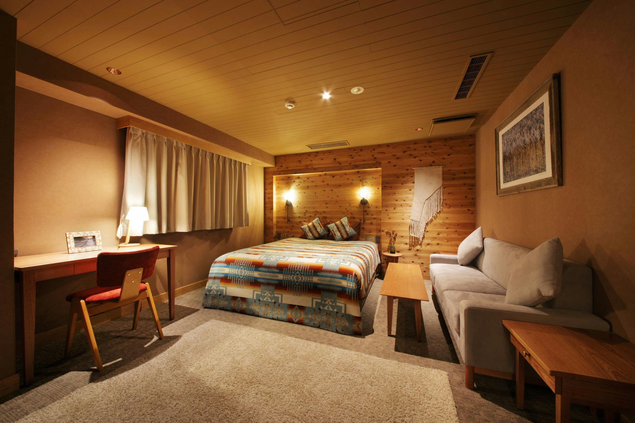 アメリカのオレゴン州ポートランドに本社を構えるウールを中心としたファッションブランド「Pendleton」とのオフィシャルコラボレーションルーム。Pendleton社製のブランケットやクッションに加え、北海道を中心に活動する写真家、井上浩輝氏の美しい作品を特別展示。さらなるロッジの暖かな雰囲気と北海道の自然を味わって頂けるお部屋です。