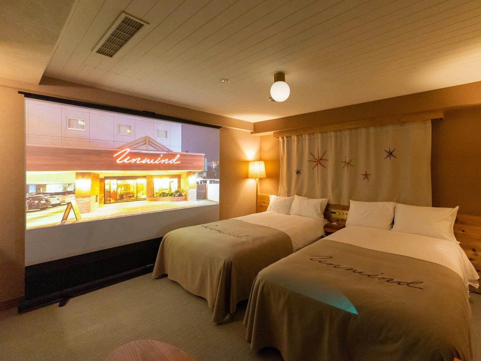 セミダブルサイズのベッドを2台設えたメインの客室です。