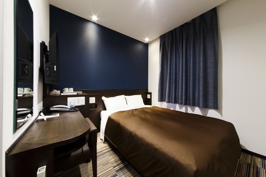 ベッドはシモンズ製幅140cmベッド1台で2名様までご利用可能です。コンパクトながらも機能性を重視したお部屋です。