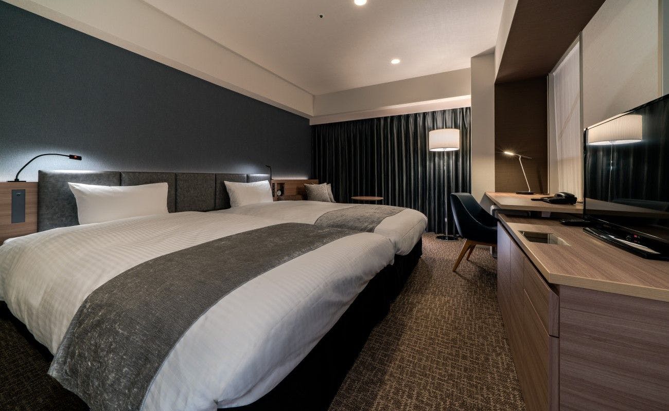 ベッド幅168センチでゆったりお過ごしいただけます。※有線&無線LAN(Wi-Fi)接続無料※加湿機能付空気清浄機※各社対応携帯充電器※お出かけ前にシュシュッと消臭スプレー※コルビー社製ズボンプレッサー