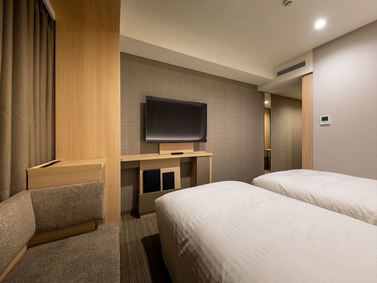 バスタイプ:洗い場付のバスタブ/シングルベッド2台(110cm幅)/ソファ・テーブル/加湿機能付空気清浄機/マッサージクッション/衣類スチーマー