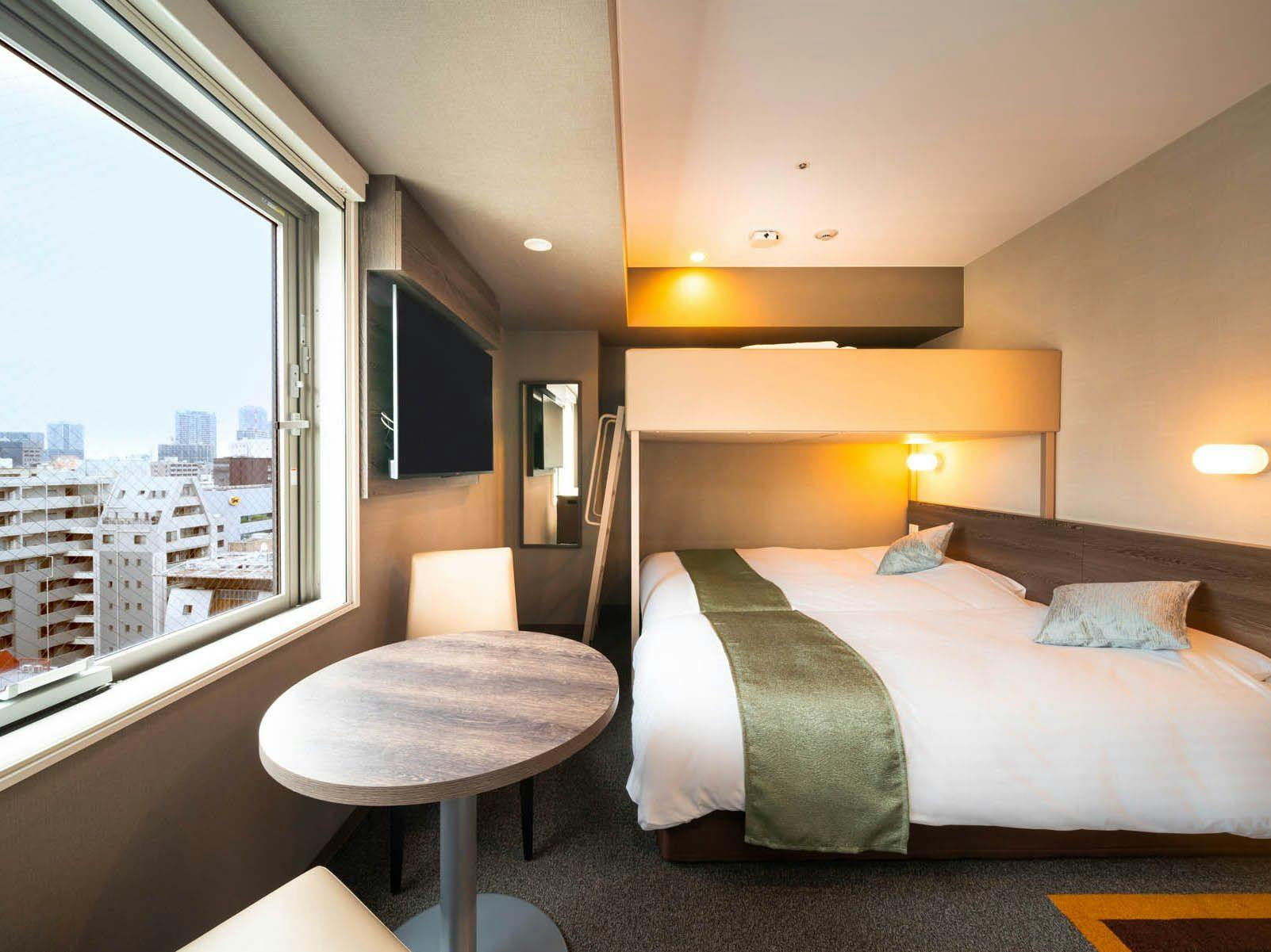 ダブルサイズのワイドベッドとお子様に人気のロフトベッドに加え、90cm幅のシングルベッドが付いた【デラックススーパールーム】です。ご家族にお勧めです。
