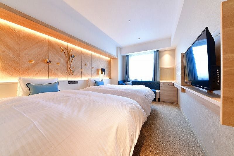 ■客室広さ 27平米■幅140cmのセミダブルベッド2台設置■エアウィーヴマットレスを導入■Wi-Fi・有線LAN完備■加湿機能付き空気清浄機完備■チェックイン14:00、チェックアウト11:00の最長21時間ステイ