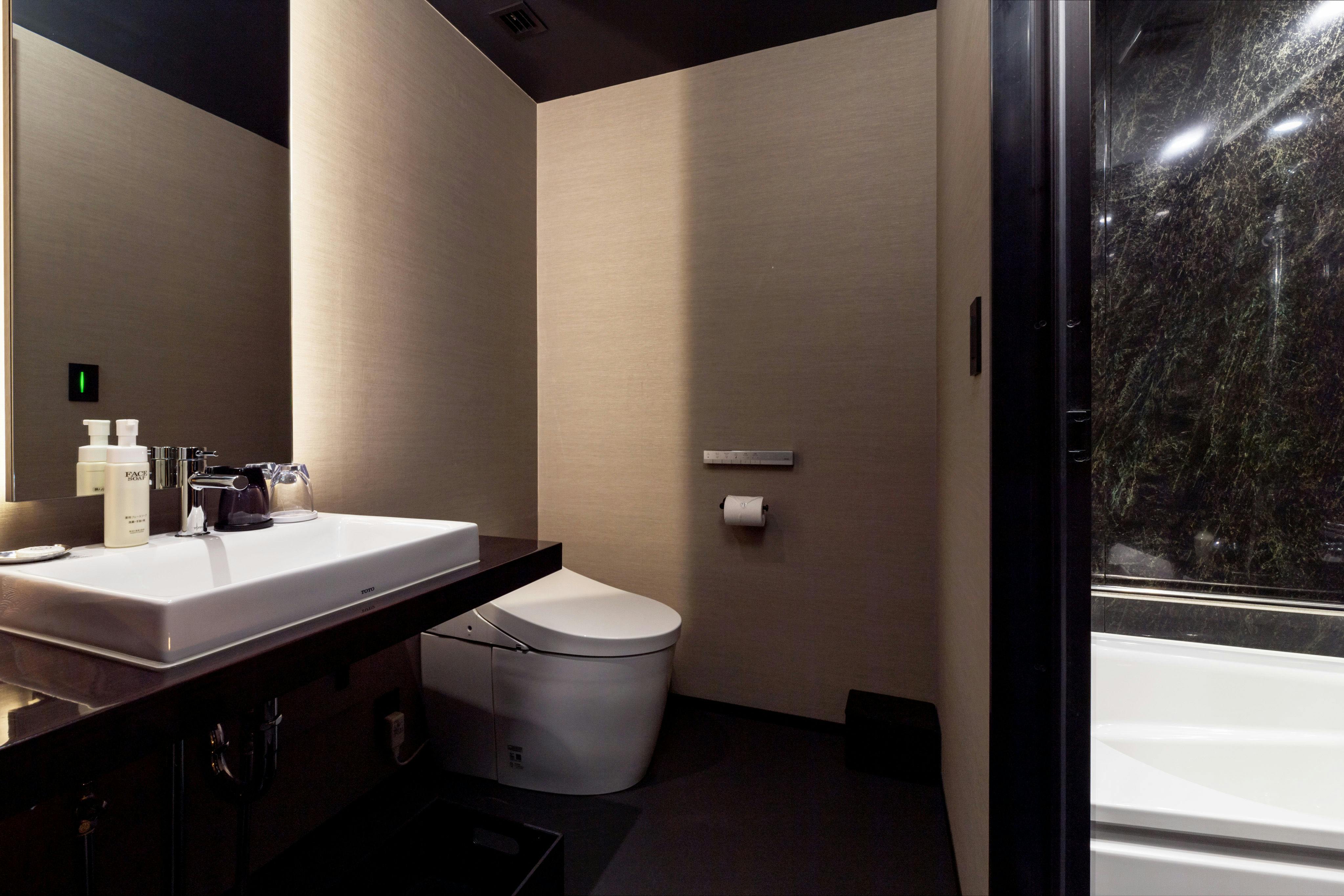 和モダンで広々と使用できるダブルサイズのローベッドで寛ぐことが出来ます。 浴槽も広々と使用でき、パウダールームを独立させることで ゆったりお過ごし頂けます。