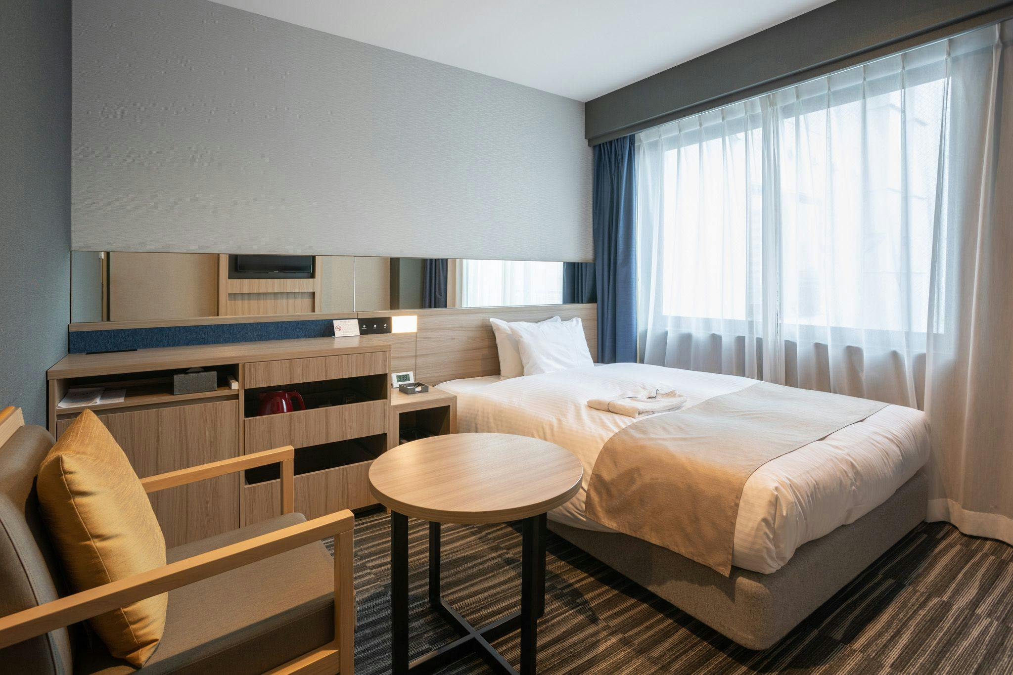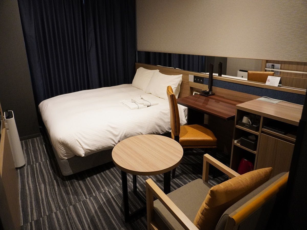 広めの居住空間でゆったりできるシングルルーム。お部屋の広さは18平米。広めの居住空間と1418のワイドサイズバスで快適にお過ごしいただけます。ベッドには、全米No.1シェアのSerta(サータ)社製ポケットコイルマットレスを採用。ベッド幅は140cmとゆったり大きめです。※バス・トイレセパレートではございません。