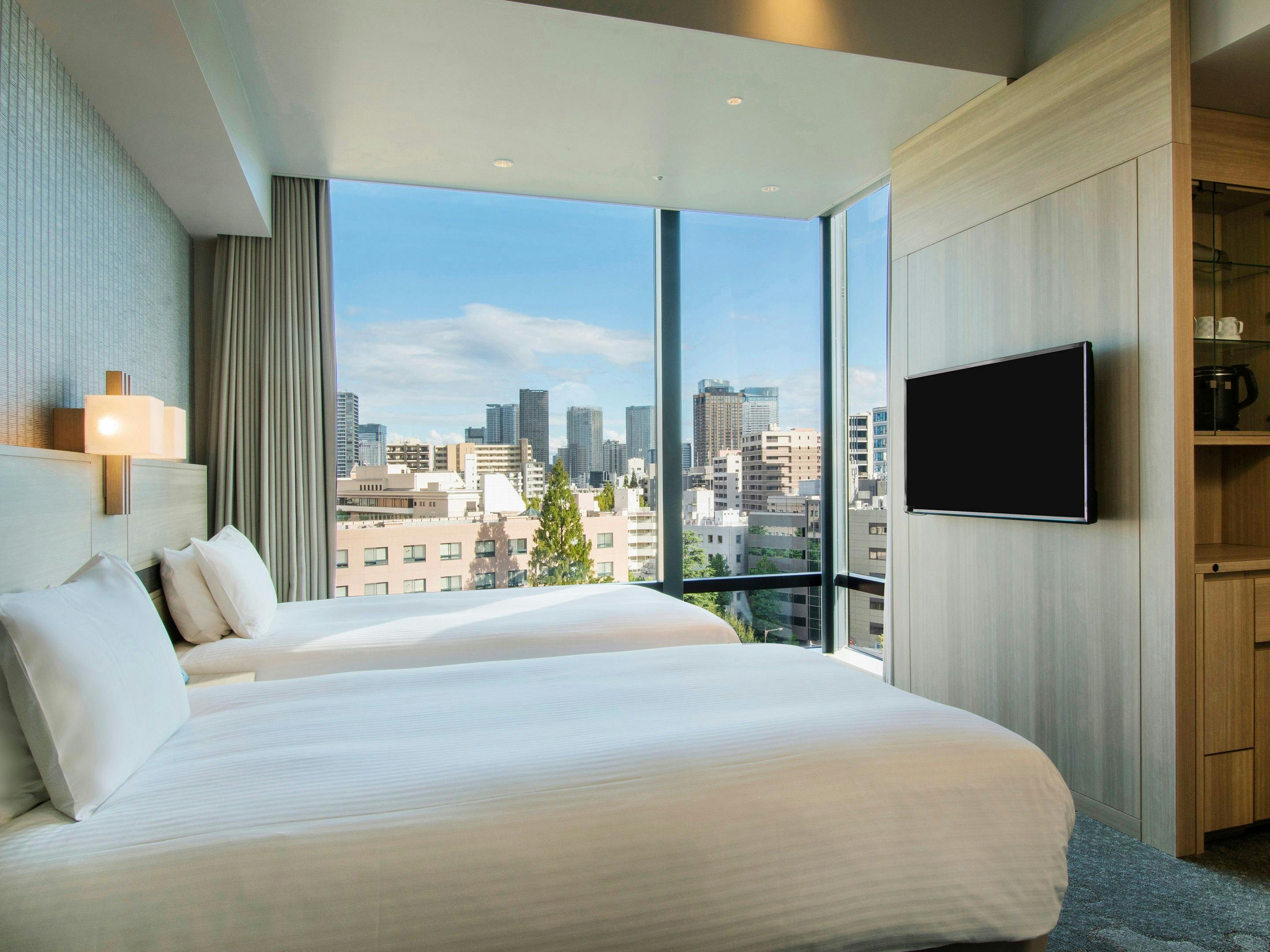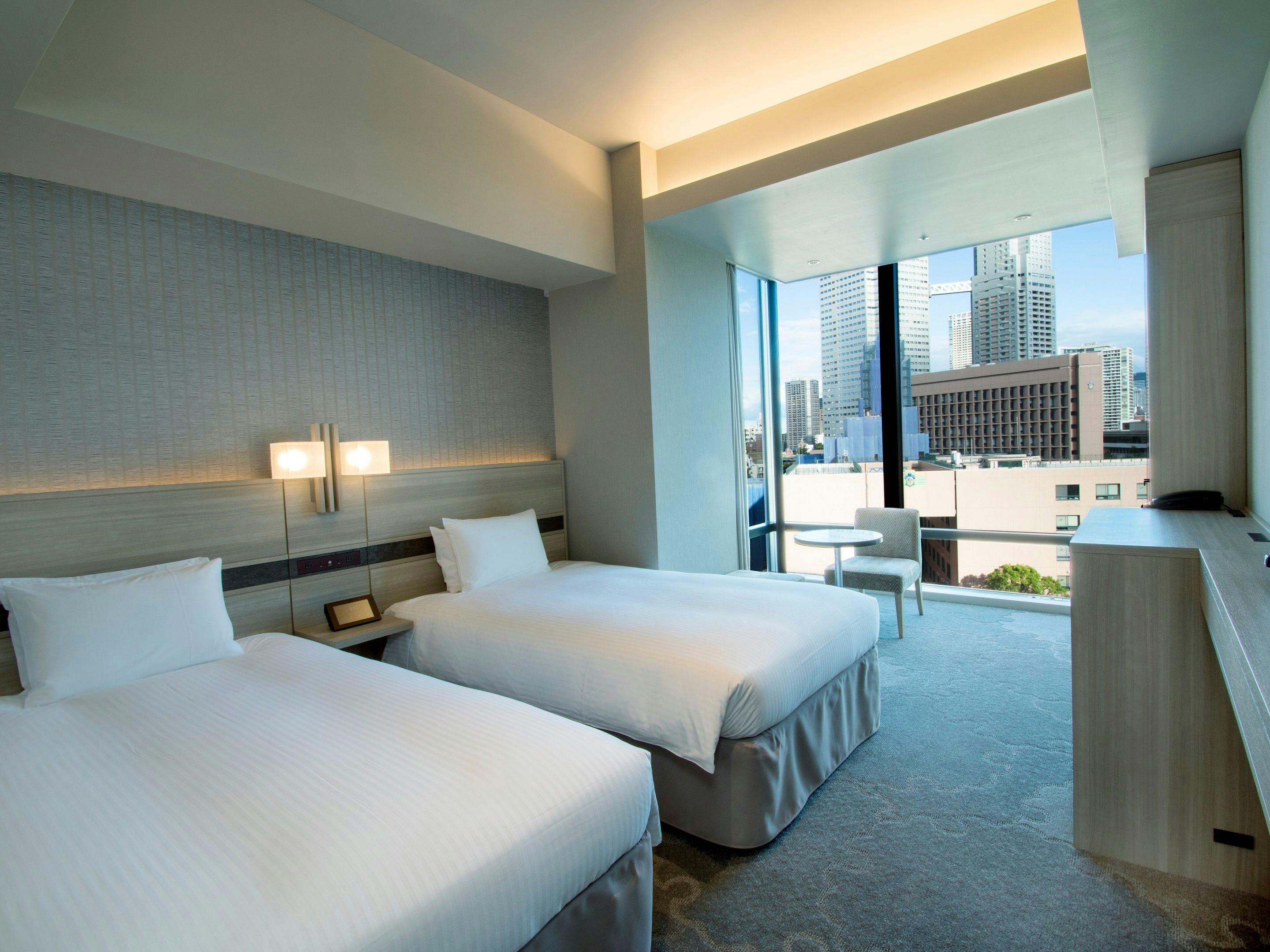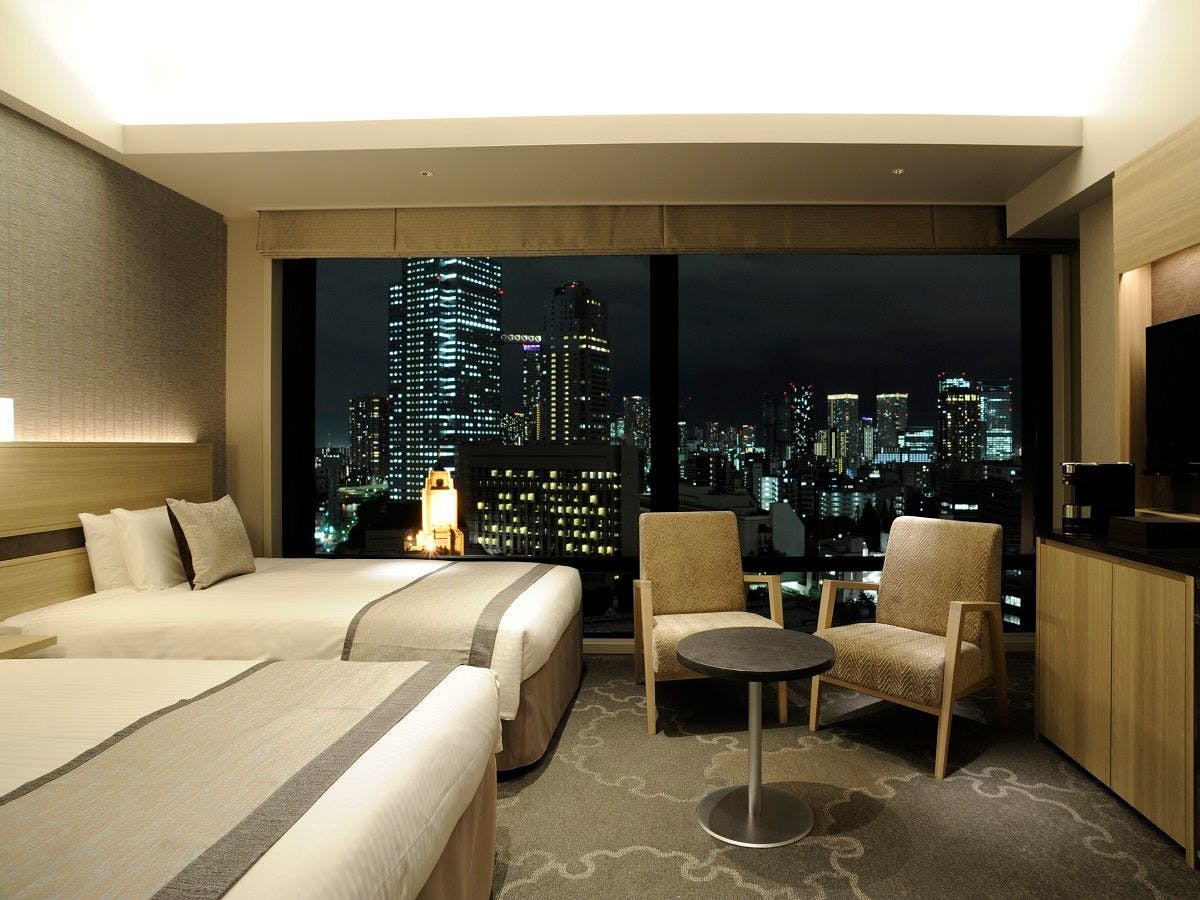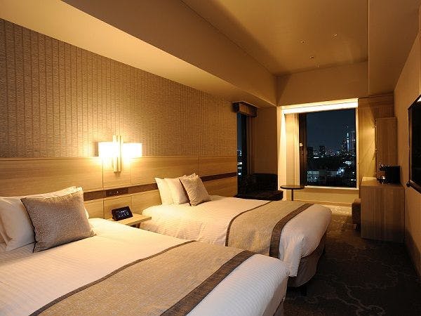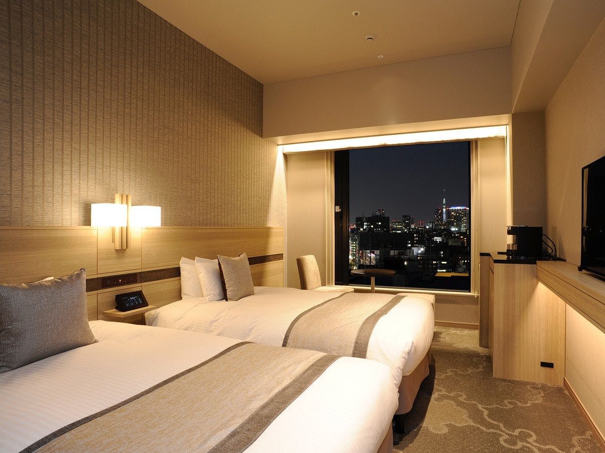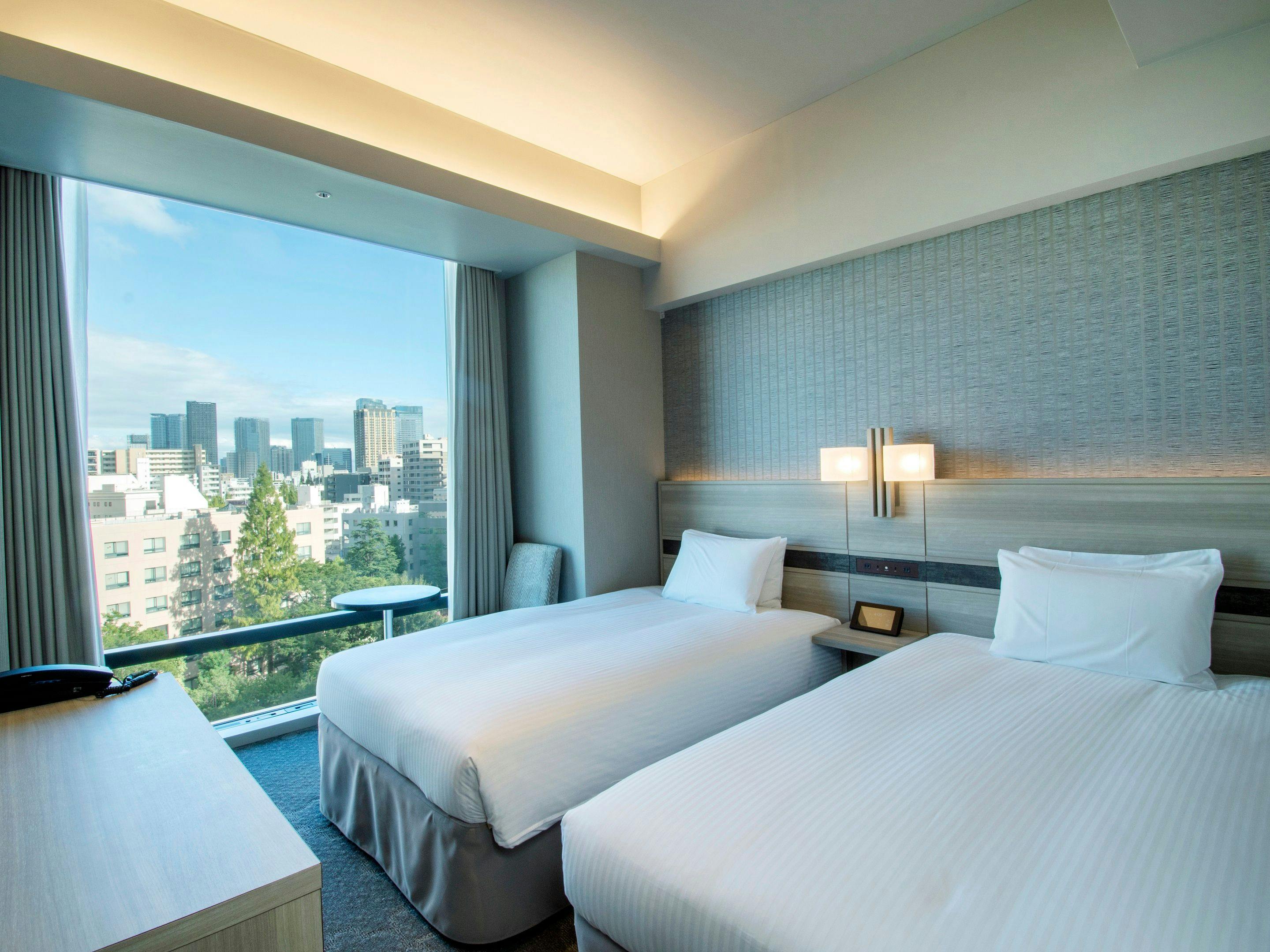 解放感のある大きな窓から、東京都心の夜景を一望できるツインルームです。