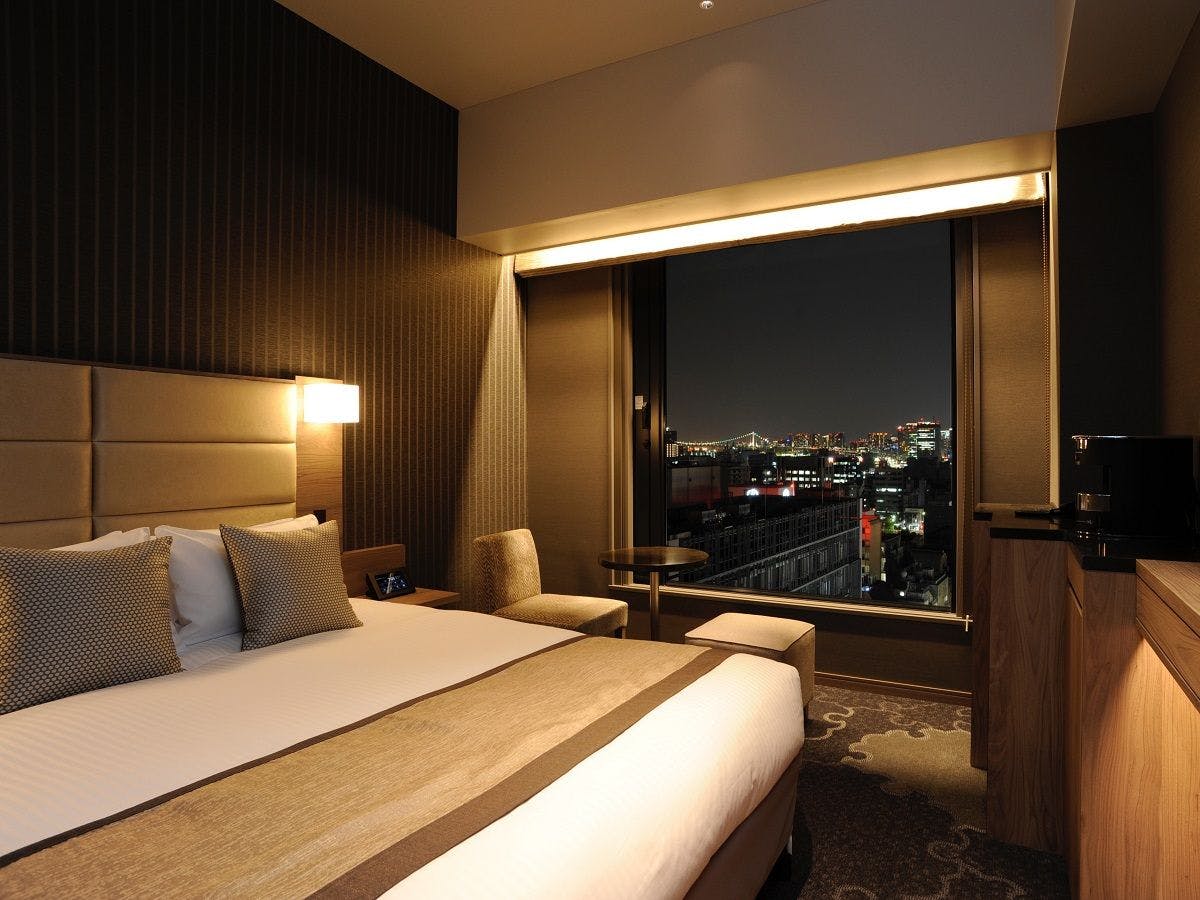 東京駅から最短10分!築地本願寺、築地場外市場、歌舞伎座、銀座・有楽町エリアへ徒歩圏内。「舞浜」駅まで最短20分。高層階スーペリアフロアや広々コーナーツインルームなど、お部屋で過ごす時間も快適!