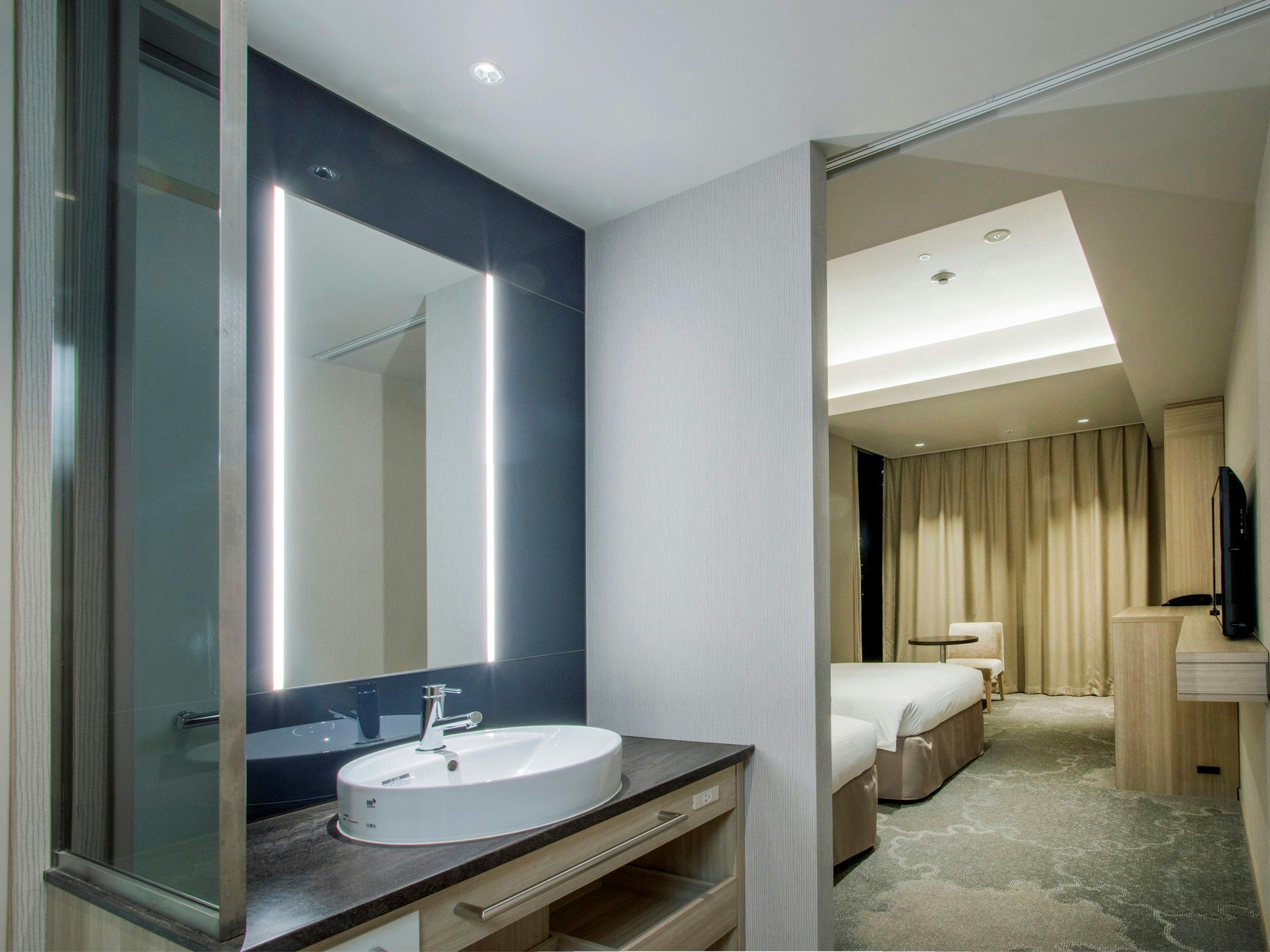 正ベッド幅160cmまたは180cm×1台/バストイレユニット/温水洗浄機付きトイレ/Wi-Fi完備/個別空調/加湿空気清浄機/43インチ液晶テレビ/冷蔵庫