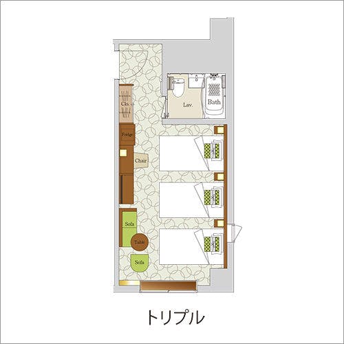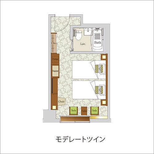 ・Serta社製レギュラーベッド2台(幅110cm×196cm)・ベットを連ねたハリウッド仕様・荷物を広げるデスク&バゲージスペース・くつろぎのソファコーナー・加湿空気洗浄機2台のベッドを連ねたハリウッド仕様の客室。ゆったりとしたソファコーナーに加え、便利なデスクスペースもご用意しています。
