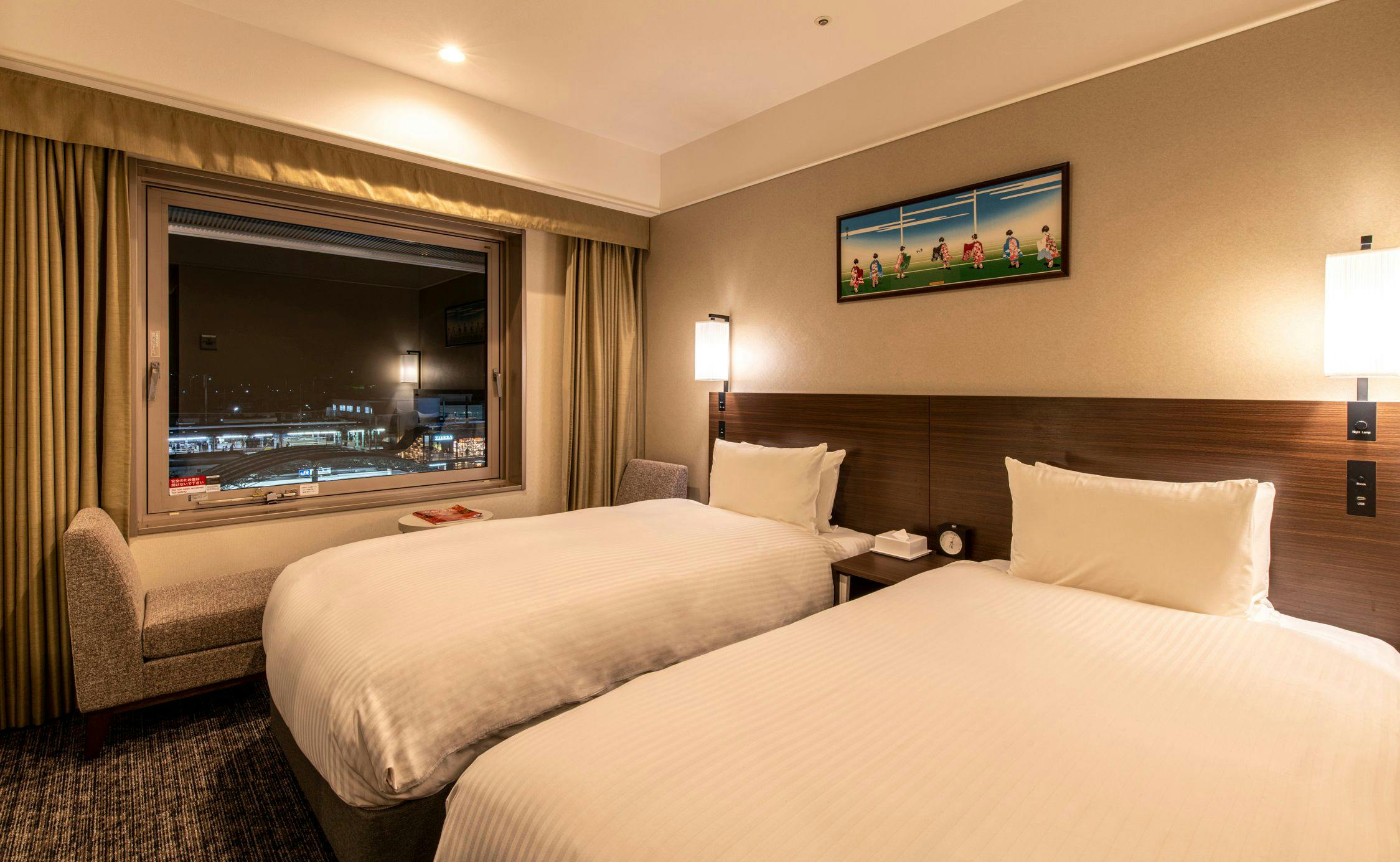 18.6平米のお部屋に幅110センチのベッドを2台ご用意したスタンダードな部屋です
