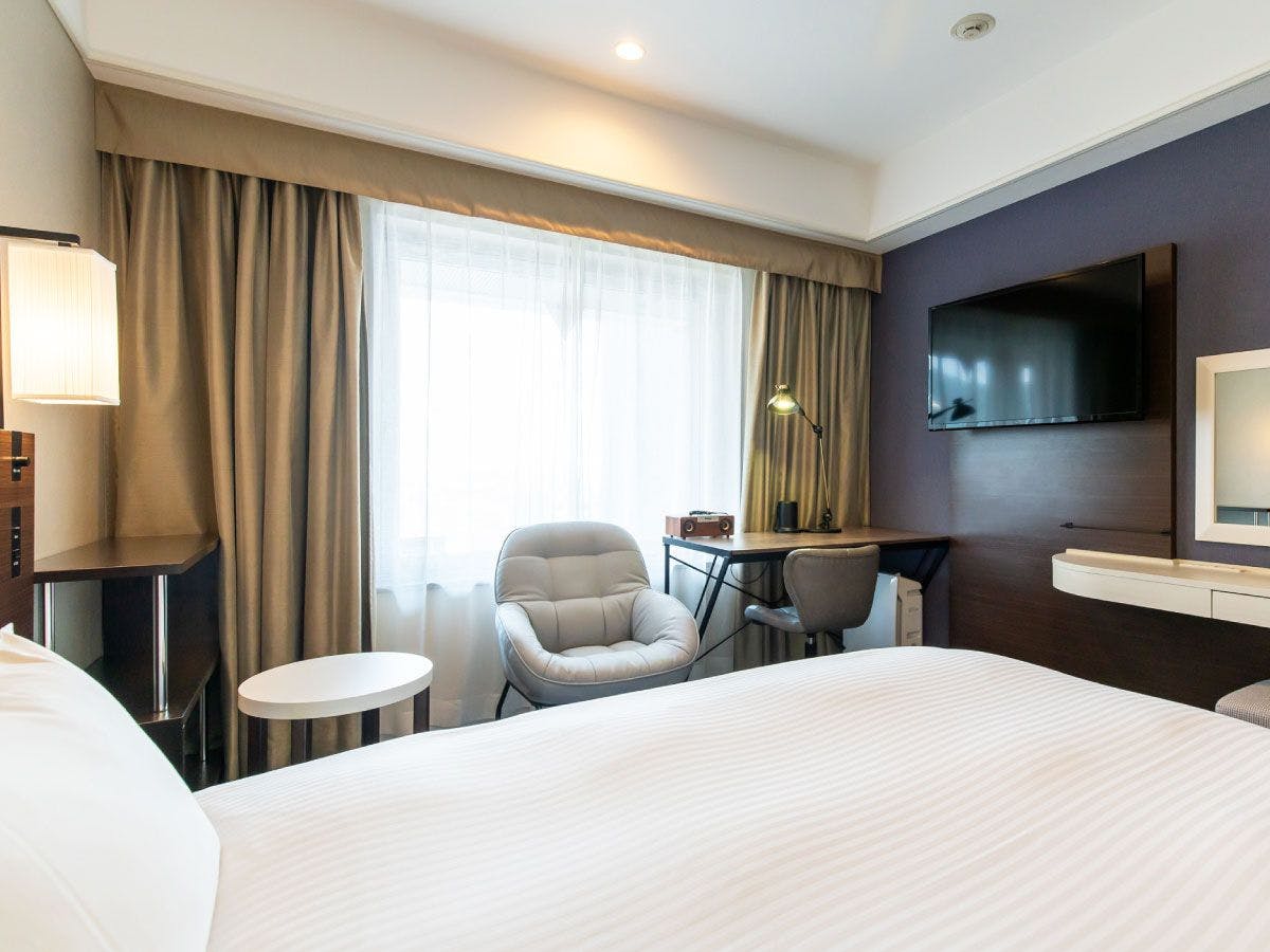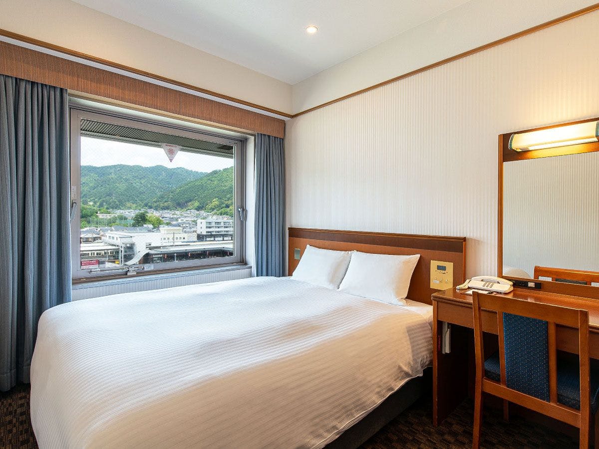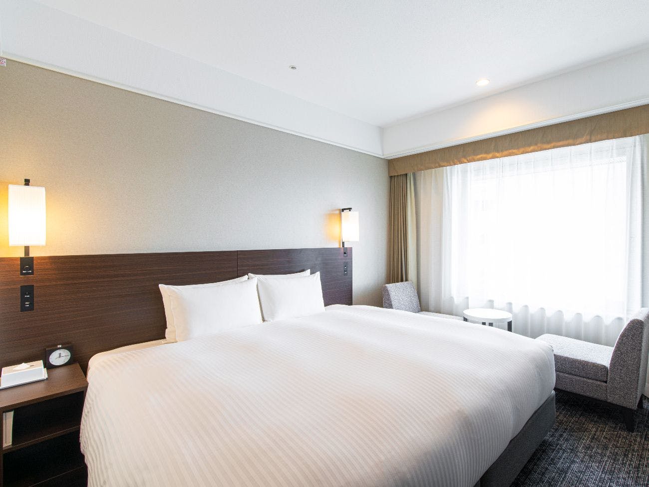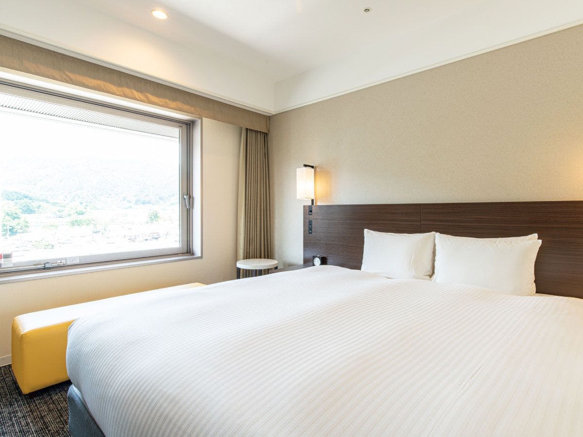 21平米のお部屋に2名様でもぐっすりとお休みいただけるダブルサイズベッド1台と