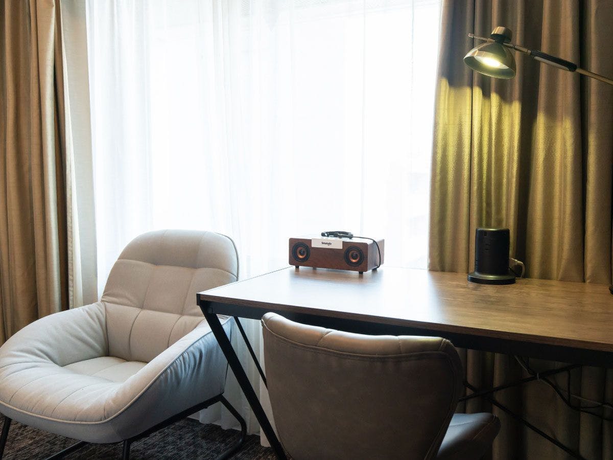 お2人でもゆったり腰を掛けていただけるソファと広々としたドレッサー付きデスクが快適