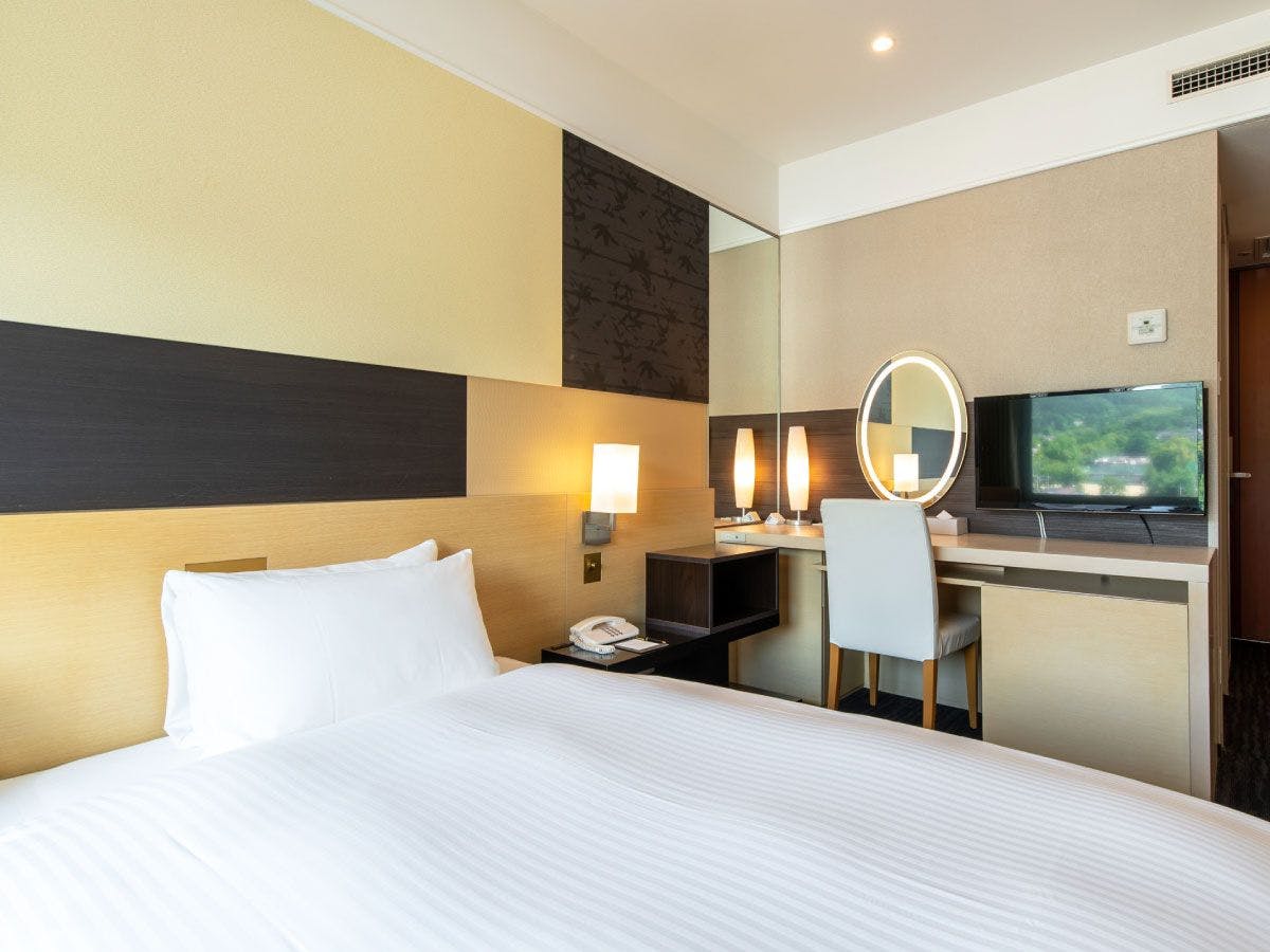 朝の身支度やちょっとした作業をしていただける鏡付のデスクをご用意したスタンダードなお部屋です。