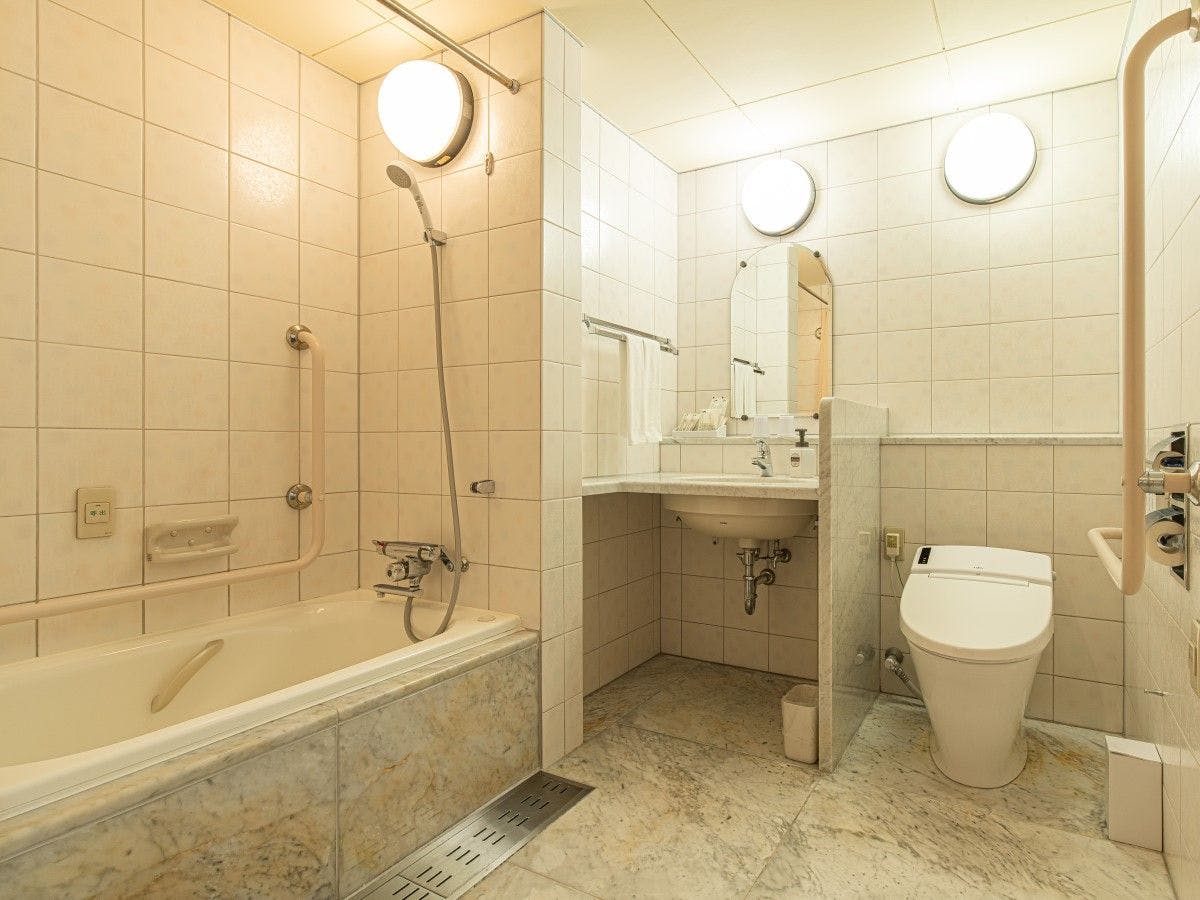 ご年配の方や車椅子をご利用の方でも快適にお過ごしいただけるよう、他のお部屋タイプより入口やバスルームは広めの設計になっており、バス・トイレには手すりをつけております。