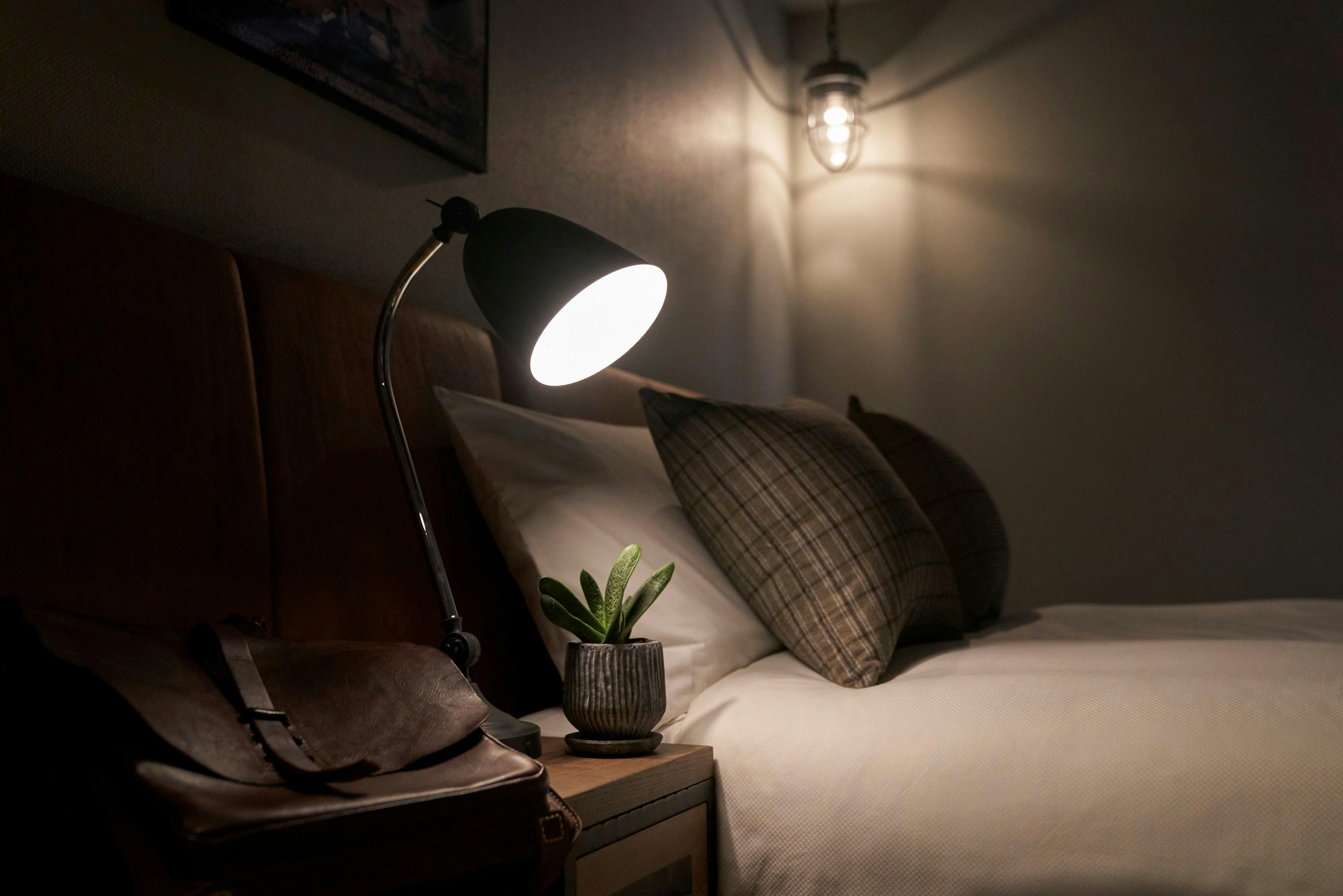 広さ14平米、ベッド幅140cmセミダブルベットで広々!