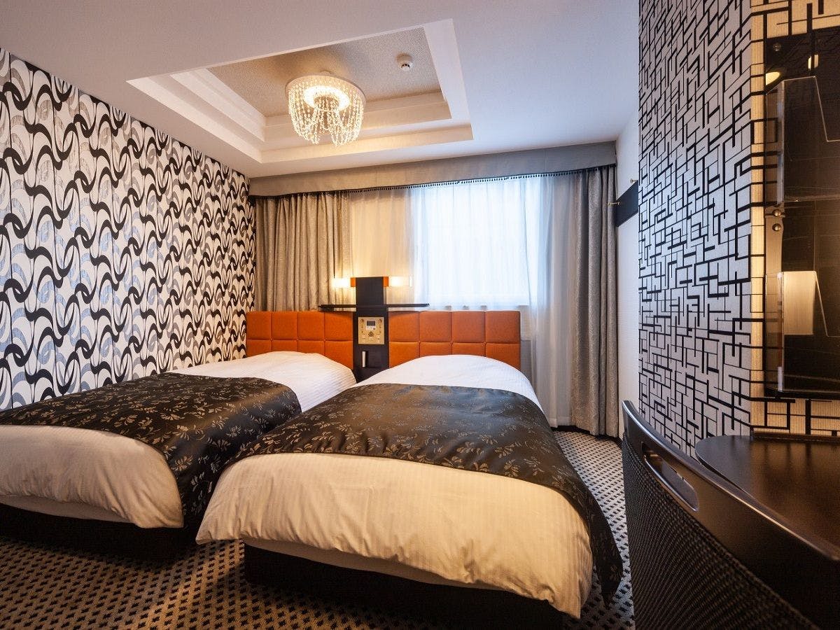 ■広さ15平米/ベッド幅113cm×2台■Wi-Fi・有線LAN接続無料■50型液晶4Kテレビ■携帯、スマホの充電に便利なベッド枕元に4つのコンセント