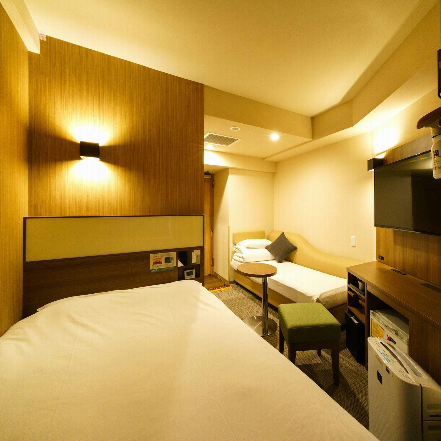 ダブルサイズのワイドベッドのスタンダードルームが2部屋繋がった【コネクティングルーム】です。