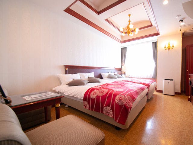 それぞれのお部屋がタイプの違うジュニアスイートルーム。特別な1日にふさわしいお部屋です。【ベッドサイズ】お部屋によりシングル(970幅)セミダブル(1200幅)ダブル(1400幅)の組み合わせで2台設置しております。■3名でご利用の場合、セミダブル以上を2台設置のお部屋へご案内となります。 ■無料でご利用できるカラオケ設備あり。