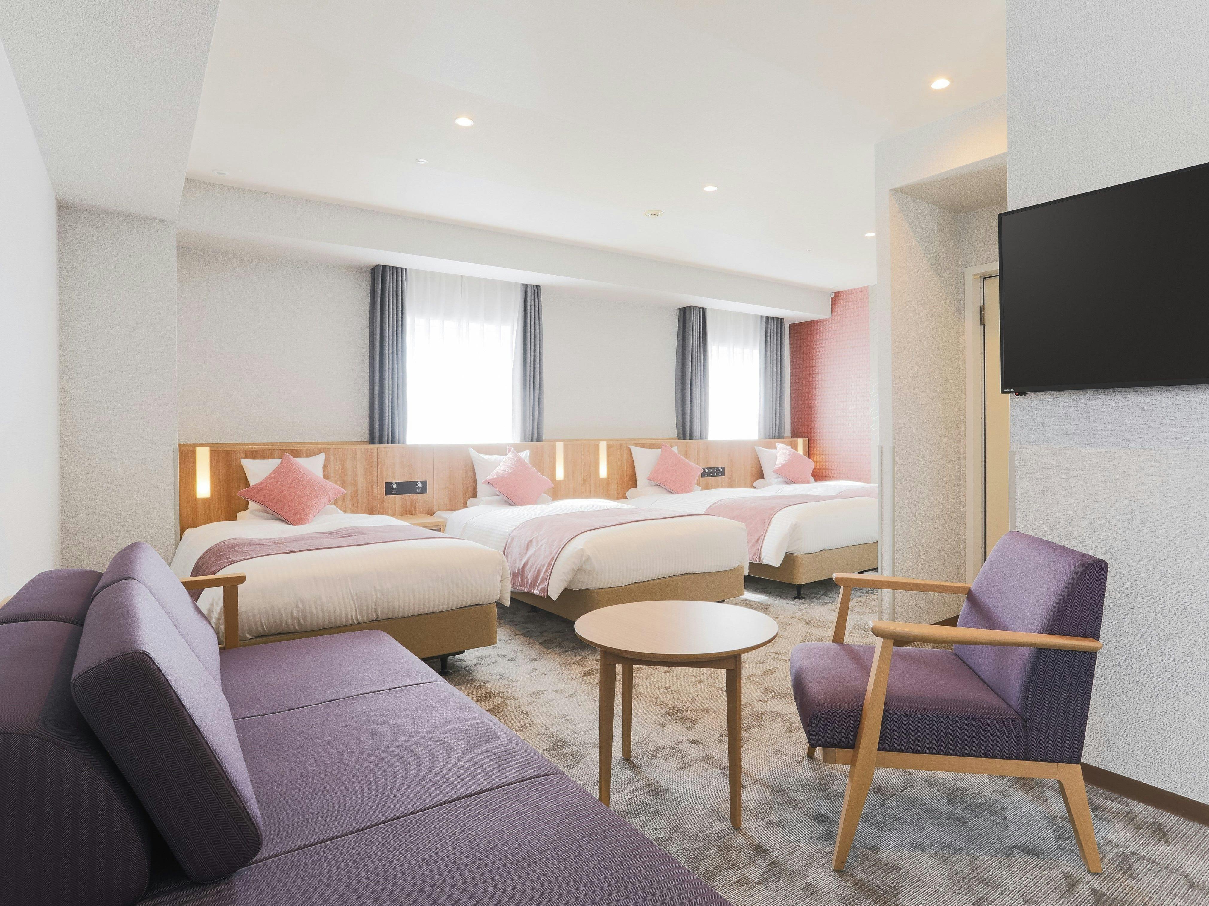 こちらのお部屋は、大人3名 小学生(添い寝)2名までお泊りいただけます。お子様がベッド1台ご利用の場合は通常料金がかかります。「大人1名」としてご予約ください。