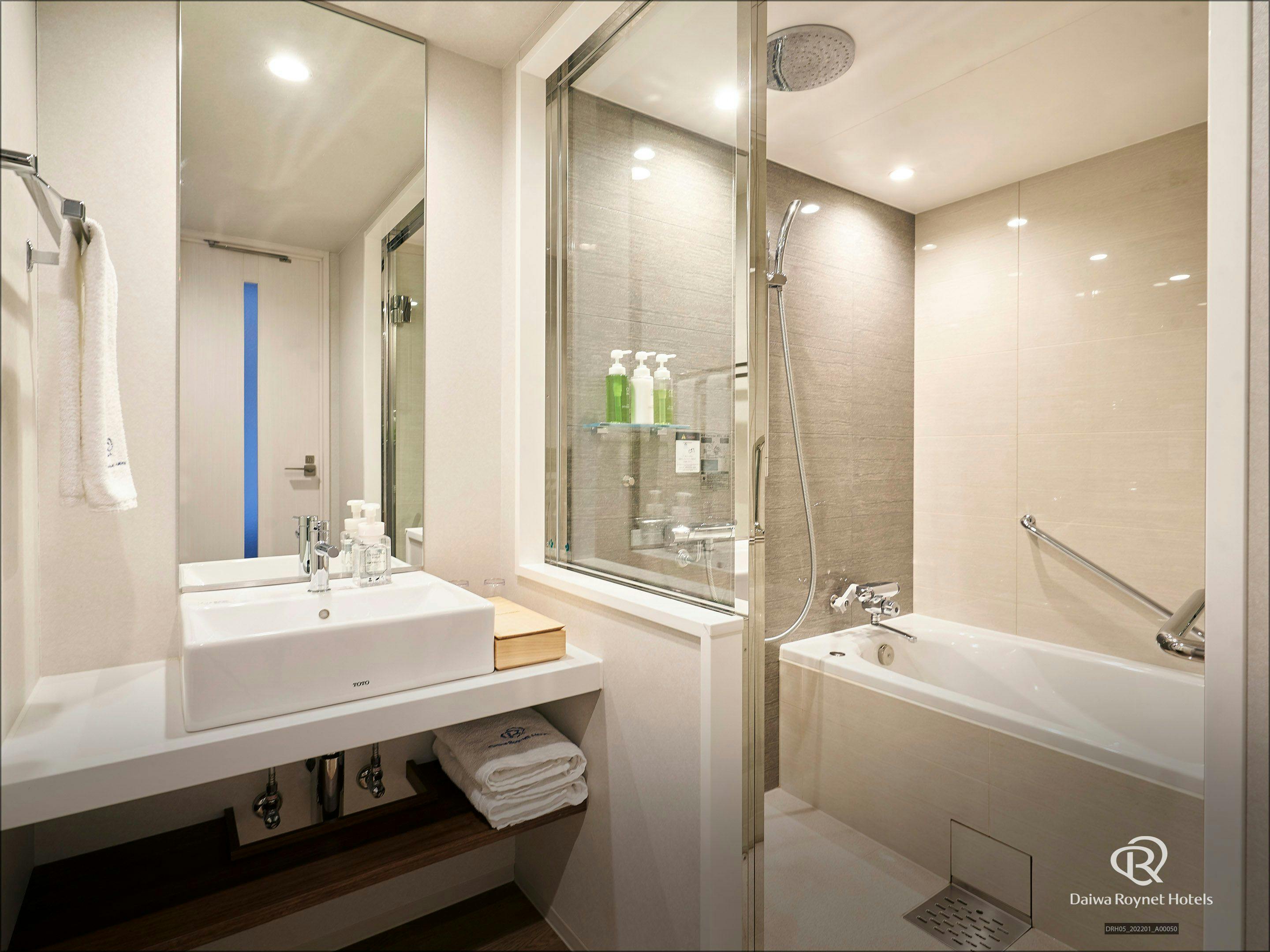 JR京都駅八条東口(新幹線側)より徒歩2分m駅前最高立地のホテルです。洗い場とオーバーヘッドシャワーのあるバスルームにて寛ぎの時間をお過ごしください。ウェルカムドリンクや館内にコンビニもあります。
