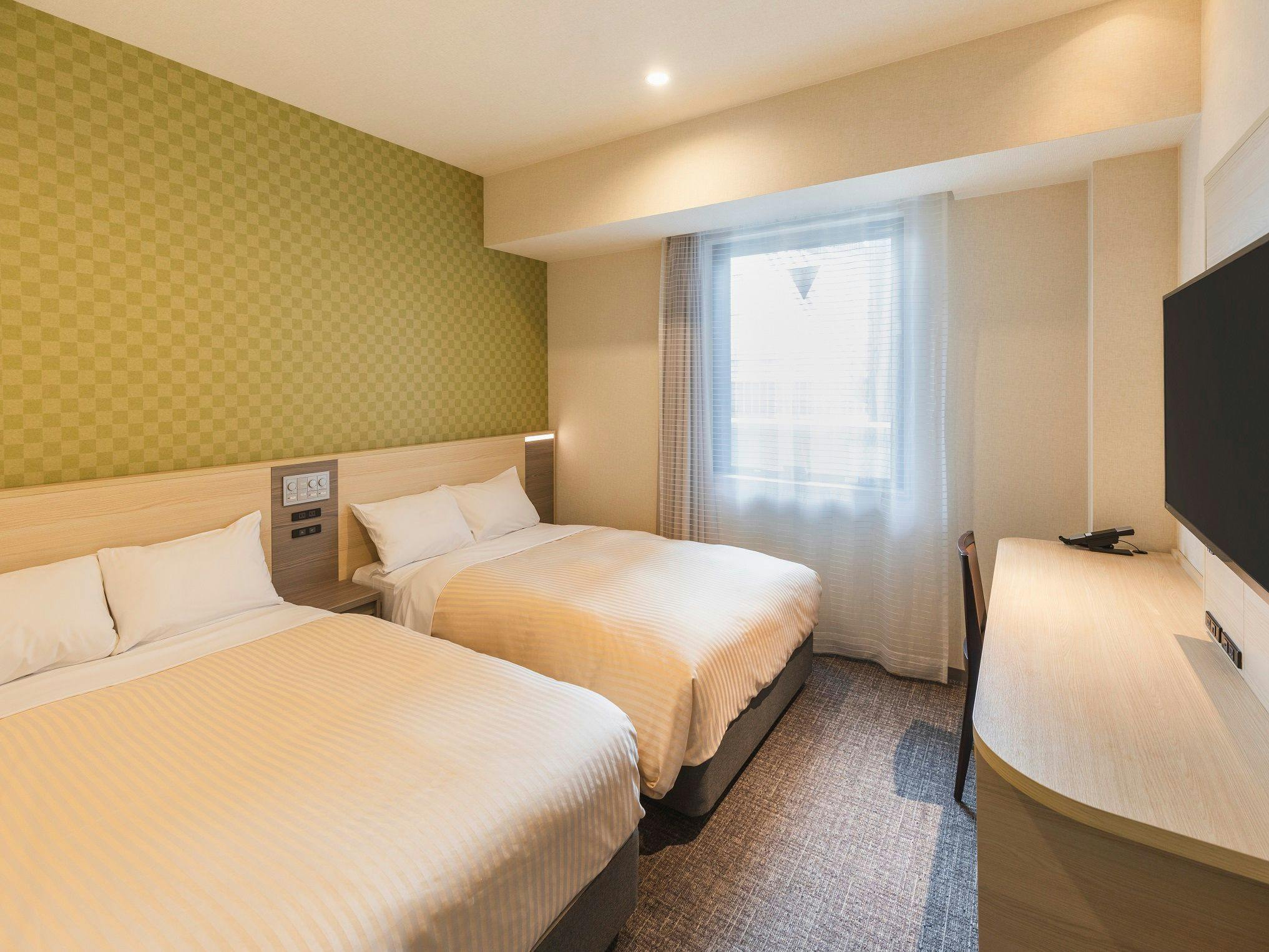 ツインルームより客室面積が広いタイプのお部屋で、2名様はもちろん、1名様でスーツケースを広げてゆったりとご利用いただくことも可能です。シモンズ社製のベッドで快適な睡眠をお届けいたします。