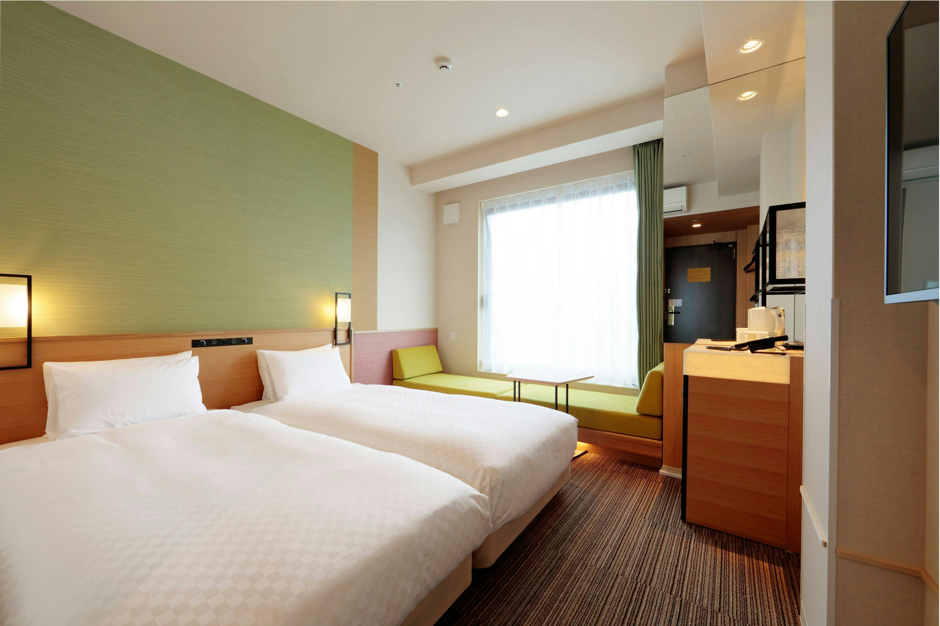 ■全室禁煙/■広さ:18~19平米/■ベッド幅:1,000mm/■客室設備:無料Wi-Fi、こあがりソファ、ミニデスク、テレビ、シモンズベッド2台、ユニットバス/■客室アメニティ:館内着・スリッパ(館内どこでもご利用いただけます)、シャンプー、コンディショナー、ボディソープ、バスタオル、フェイスタオル、ドライヤー、電気ポット、グラス、マグカップ ※小学生以下の添い寝は2名様まで可能