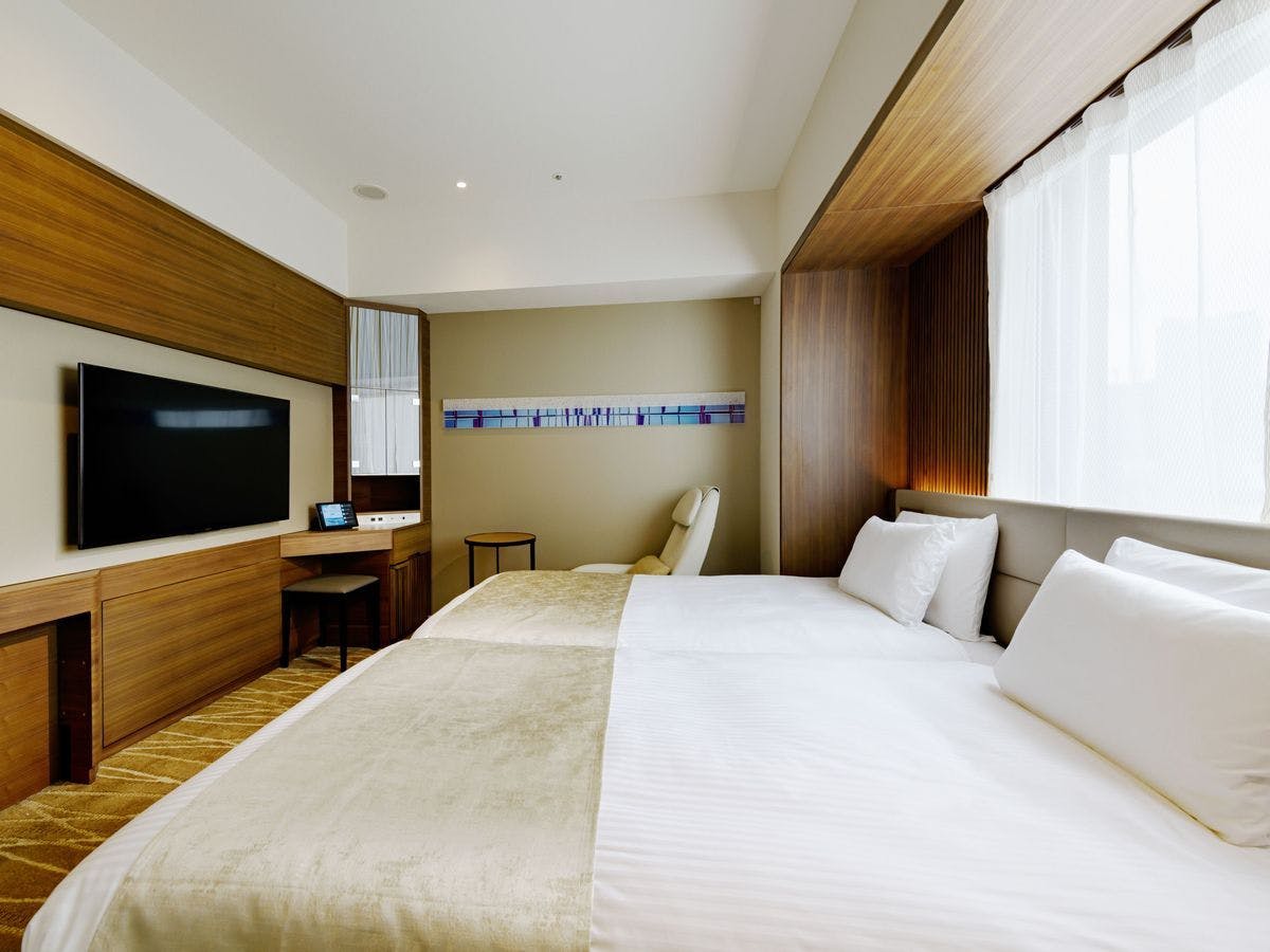 お部屋タイプはホテルチェックイン時に決定。事前リクエストは承れません。ベッドサイズダブルルーム利用時 幅160cm×長さ200cm 1台ツインルーム利用時 幅110cm×長さ200cm 2台