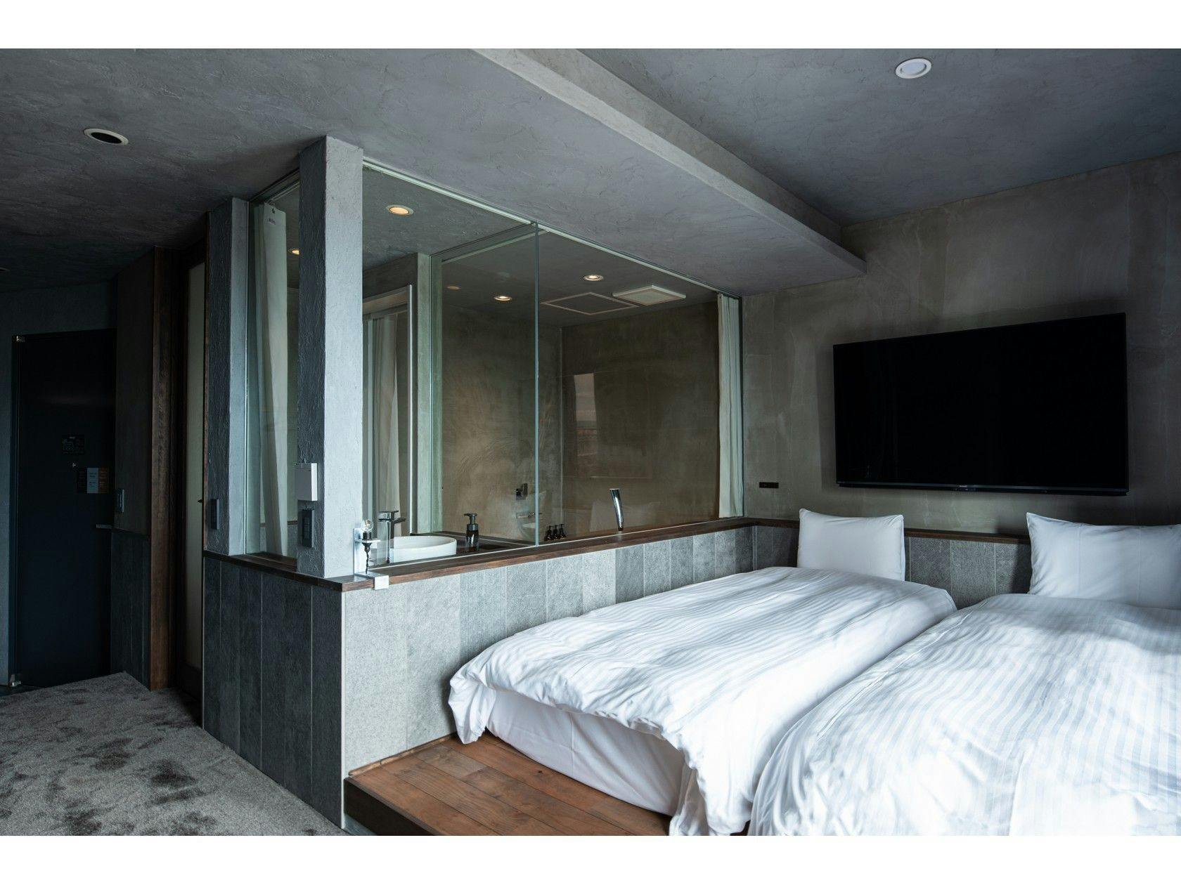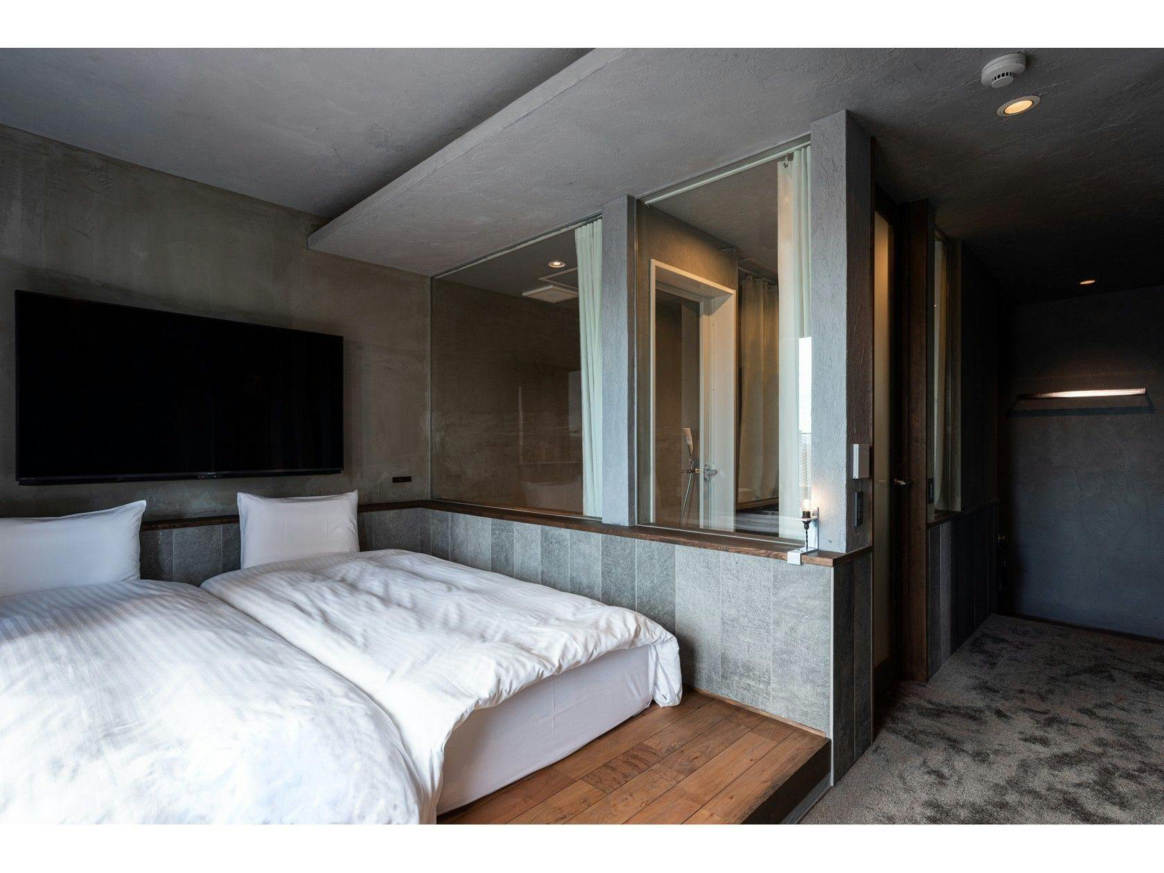 ※ベッドから壁、ベランダまでのスペースがなく、お部屋全体にベッドが設置されているコンパクトなお部屋となっております。予めご了承頂いた上でご利用ください。