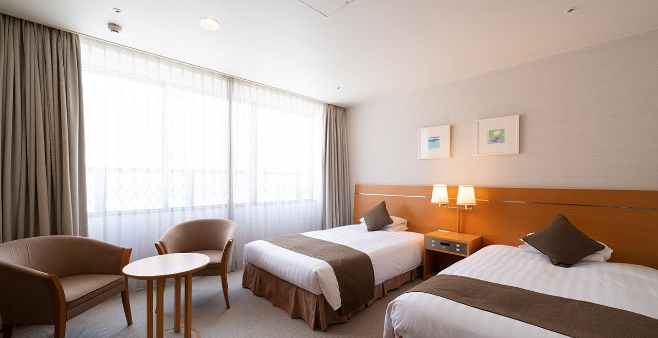 ツインルーム禁煙室 お部屋の広さ:31平米 ベッドサイズ:縦203cm×横120cm バス&シャワートイレ付き インターネット全室完備