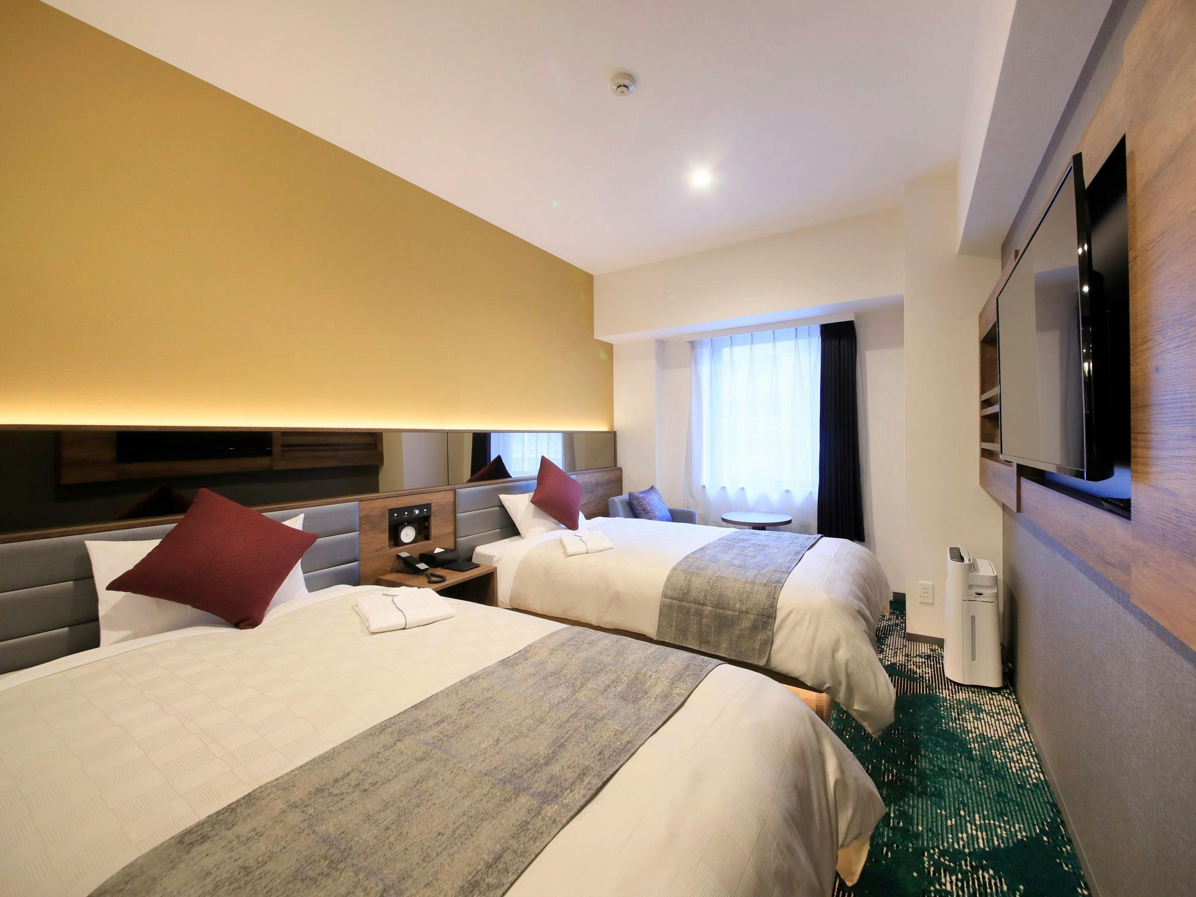 19平方メートルの室内にシングルベッドを2台設置。シンプルで機能的な客室は様々なシーンでご利用頂けます。
