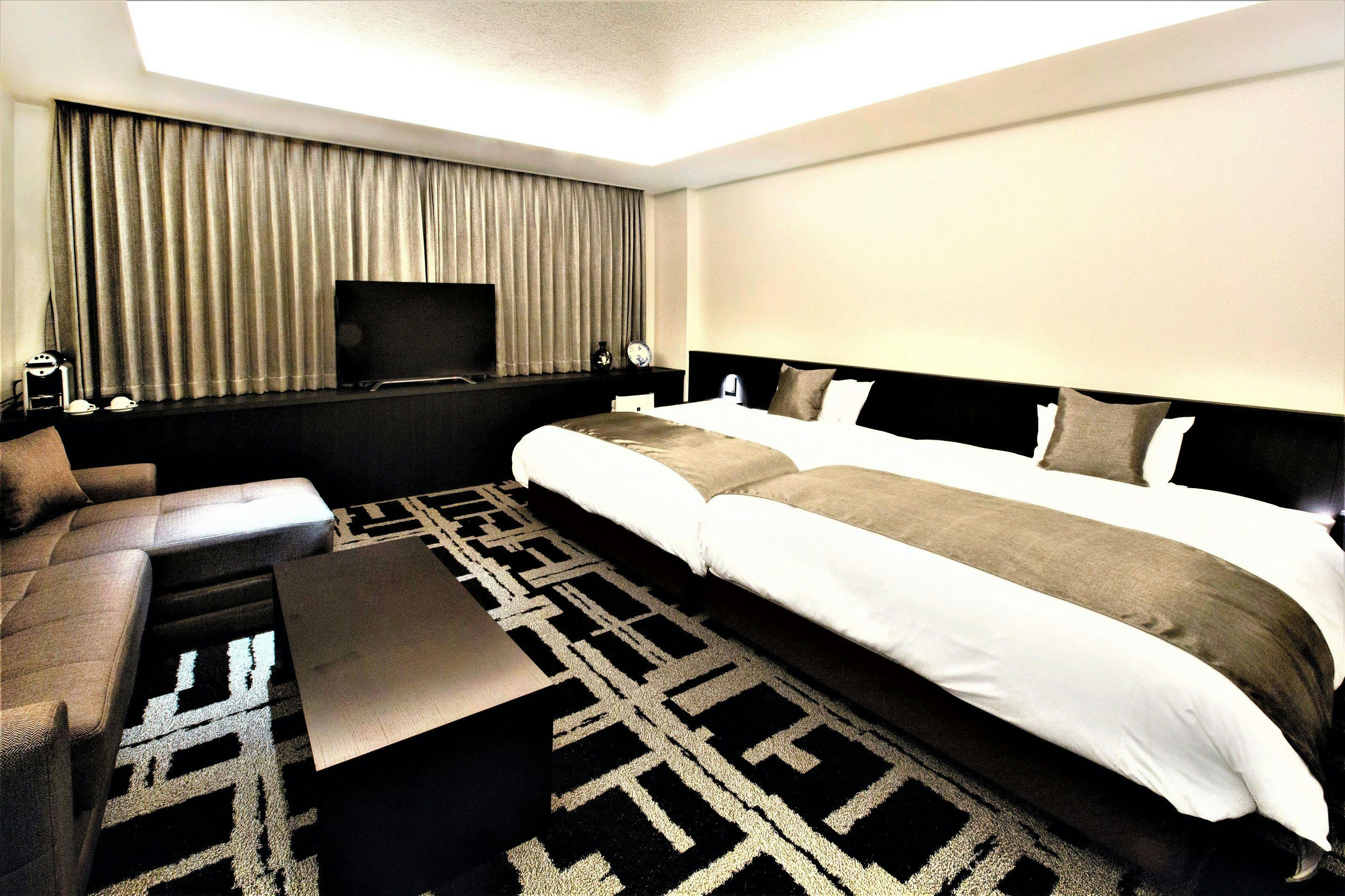 40平米の広々としたツインルーム。全室シモンズ社製ベッドを完備。シンプルな中にディテールにこだわり、京都のテイストも感じられるインテリア。バスルーム・お手洗い・洗面所がセパレート。柔らかな肌触りのリネン、機能性あるバスルームなど、1日でも長期でもゆったりと京都の旅をホテルで癒していただけることをお約束いたします。