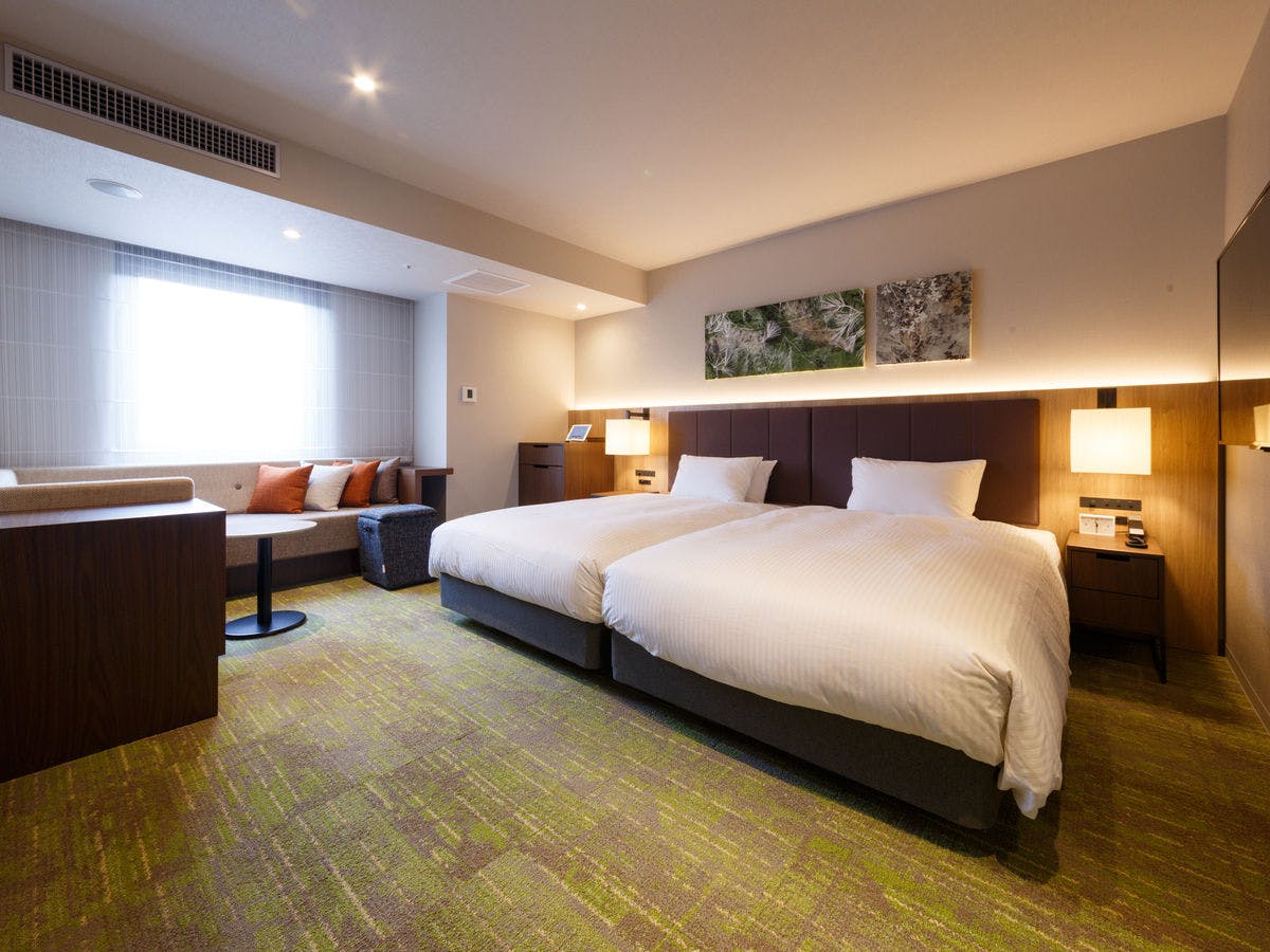※120cm幅ベッド2台※全館禁煙・加湿空気清浄機・マッサージ機能付クッション