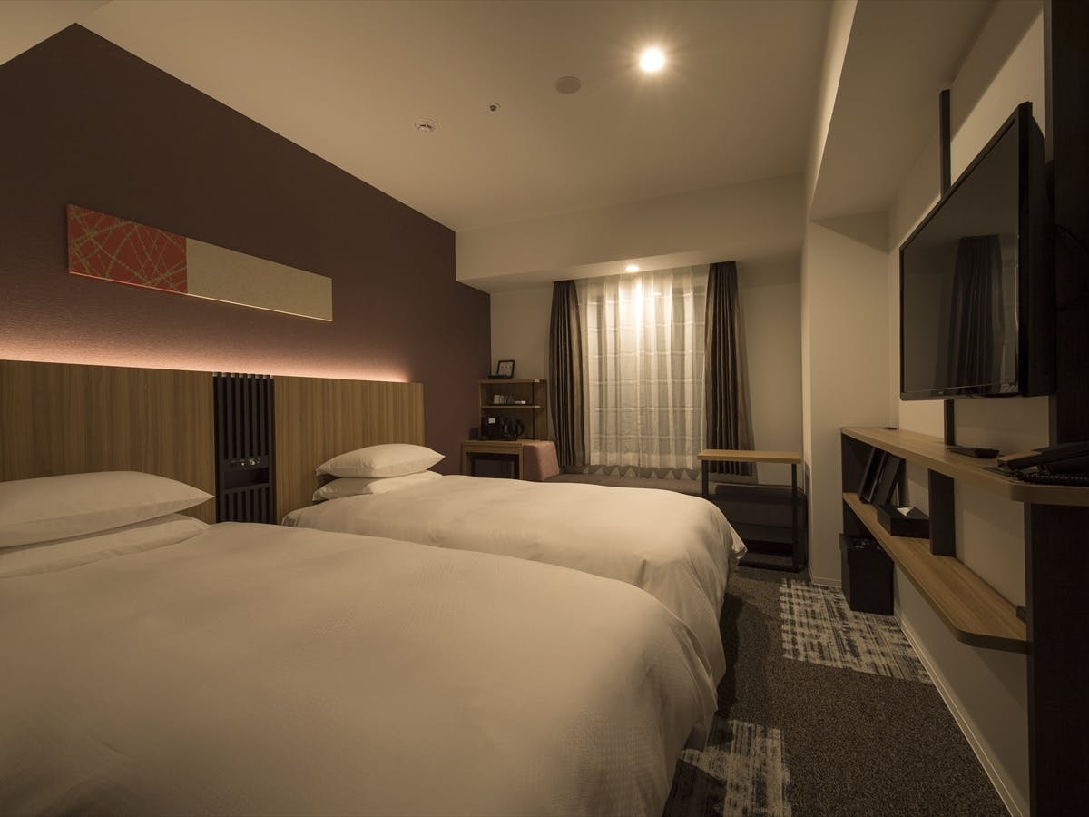 お部屋はホテルにおまかせ!ツインタイプのお部屋をご用意いたします。ベッドサイズ(113×196×30)全室Wi-fi接続無料・加湿機能付き空気清浄機完備・バス/トイレ(セパレートタイプ)アメニティタオル、パジャマ、ドライヤー、スリッパ、シャンプー、リンス、コームネスプレッソコーヒーマシーン完備(3種類のフレーバーが楽しめます)