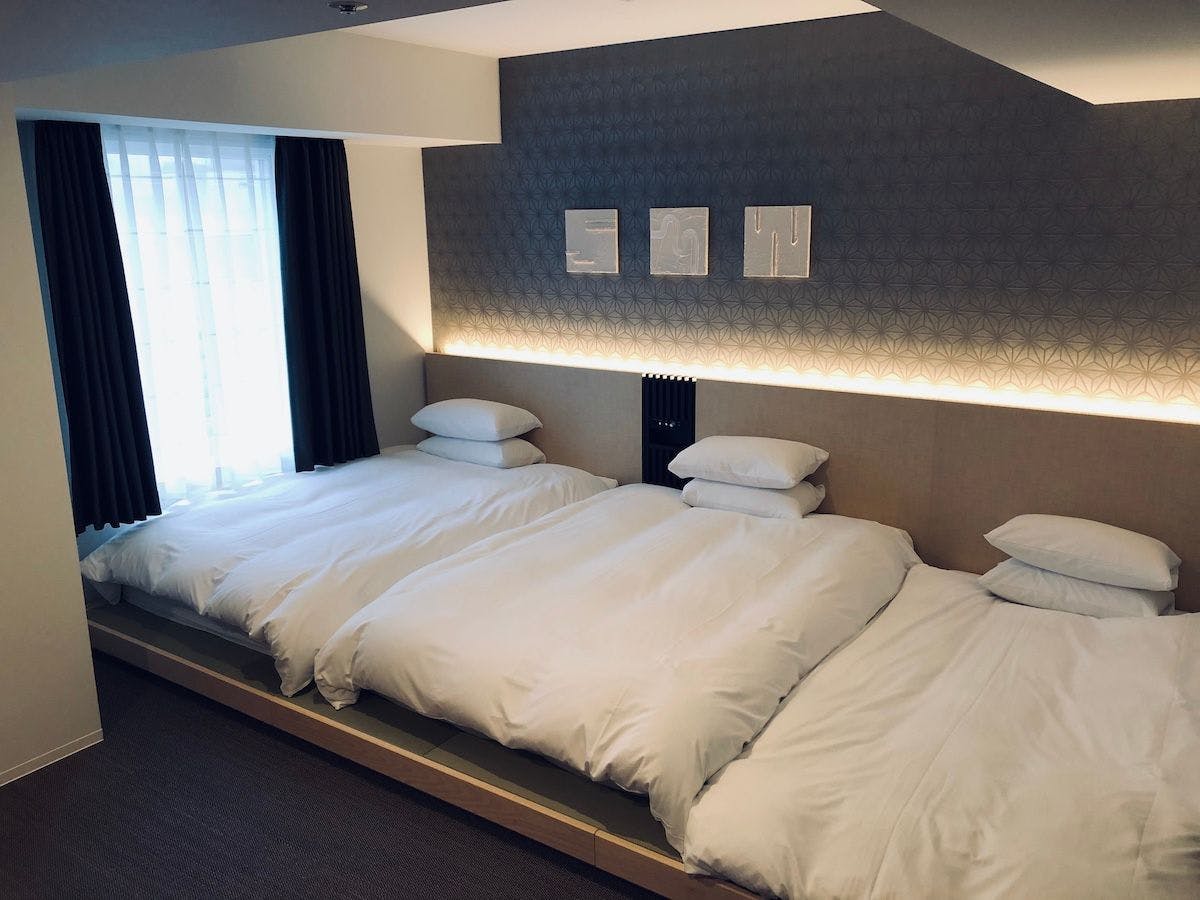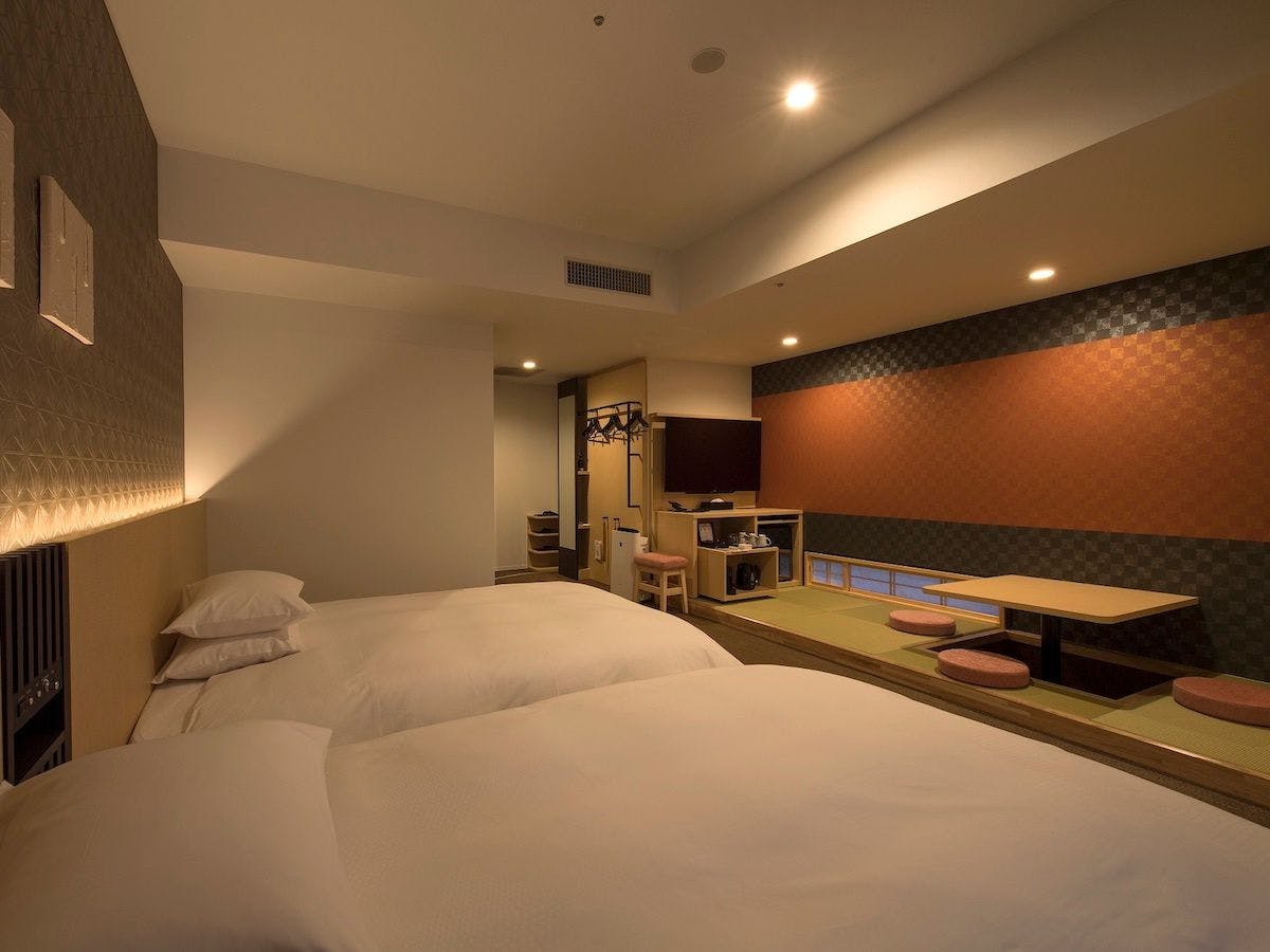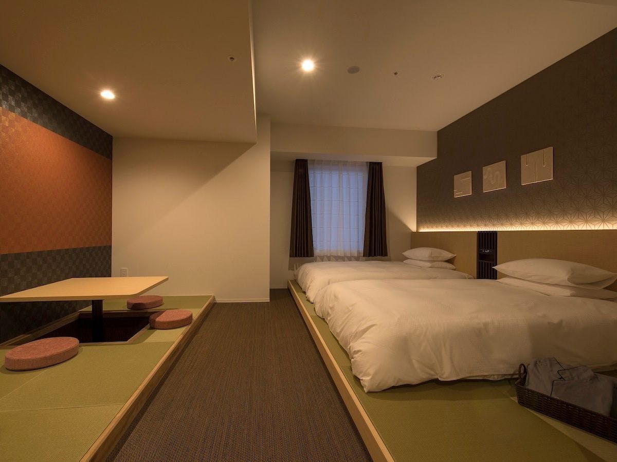 【ジャパニーズスタイルツイン・禁煙】ツインルーム和室(30平米)3名対応可ベッドサイズ(134×196×30)/ エキストラマットレス(97×195×12)/ 掘りごたつ全室Wi-fi接続無料・加湿機能付き空気清浄機完備・バス/トイレ(セパレートタイプ)アメニティタオル、パジャマ、ドライヤー、スリッパ、シャンプー、リンス、コームネスプレッソコーヒーマシーン完備(3種類のフレーバーが楽しめます)