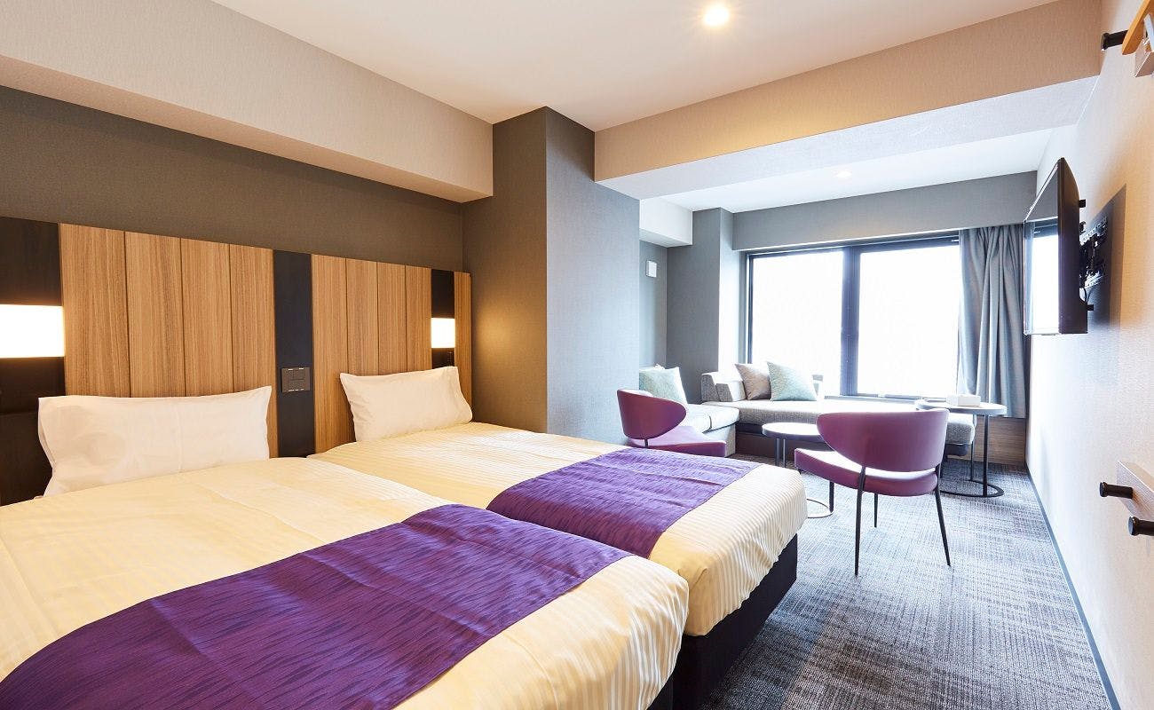 デザイン&機能性を追求したスタンダードなツインタイプのお部屋です。添い寝可能でファミリーにもカップルにもおすすめ!○全室WI-FI無料○オリジナルマットレス〇シャワー【添い寝のお子様について】・大人1名宿泊の場合は1名まで添い寝可能・大人2名以上宿泊の場合は2名まで添い寝可能